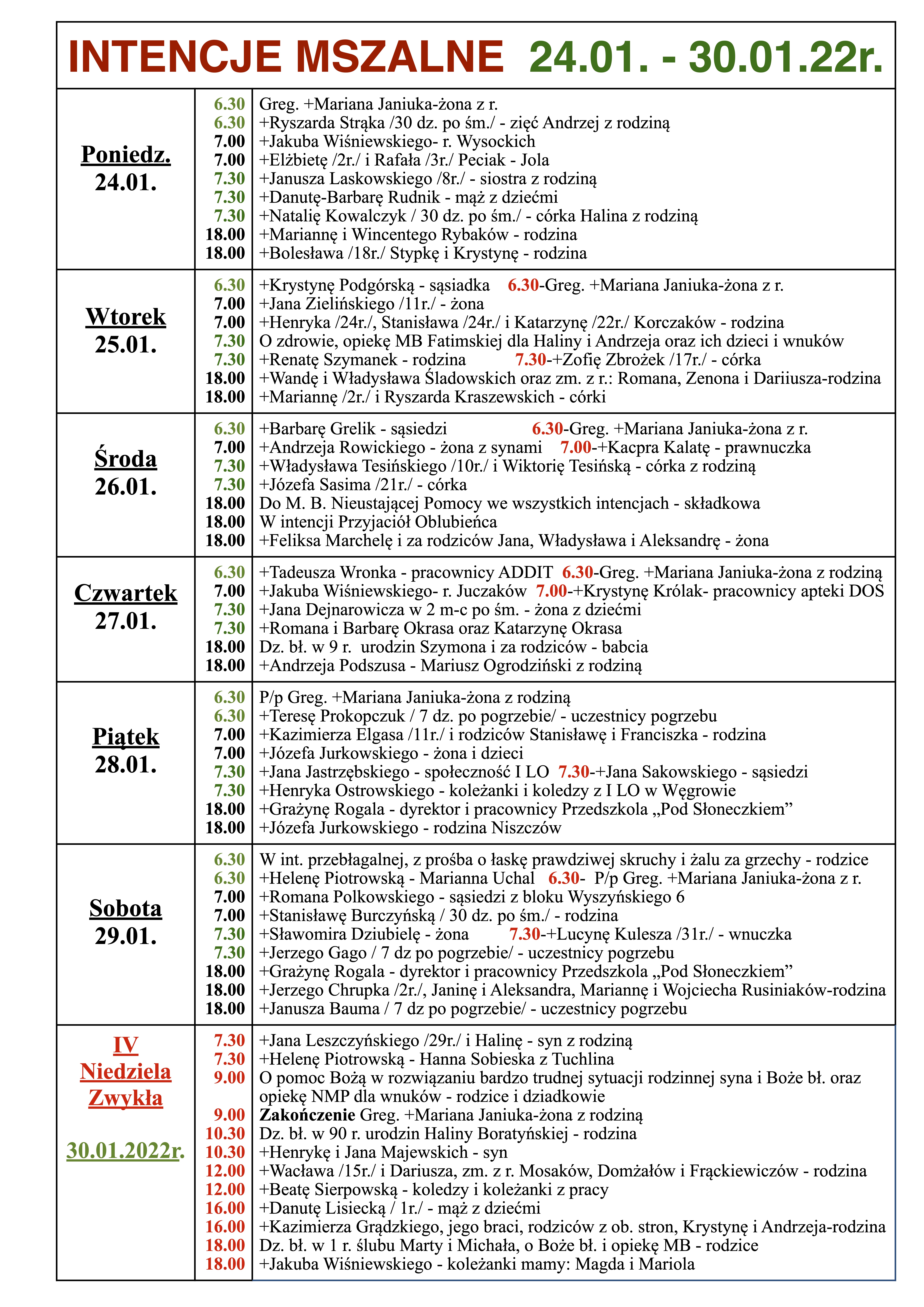 INTENCJE MSZALNE 24.01. – 30.01.22r.