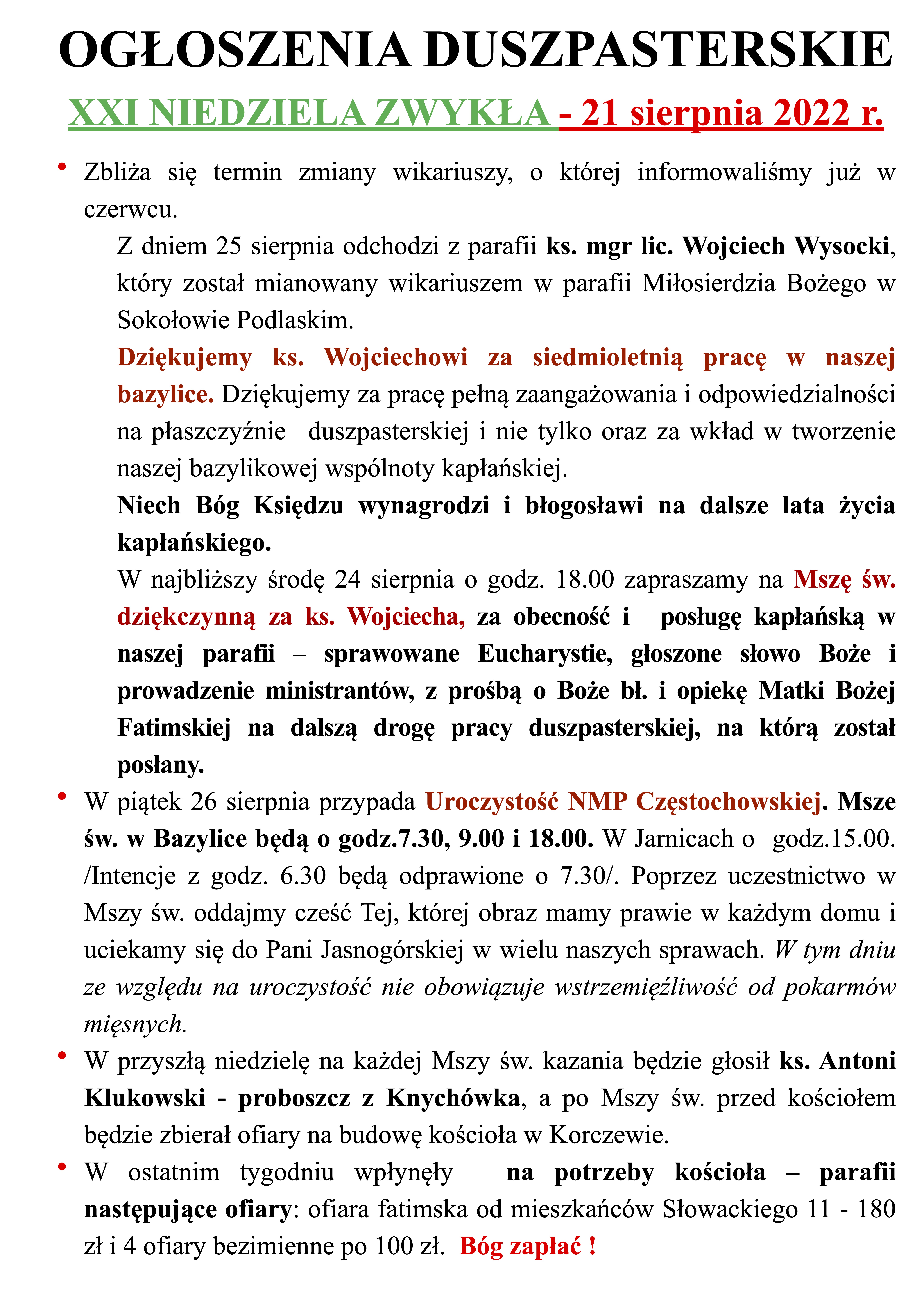 INTENCJE MSZALNE 22.08. – 28.08.22r.