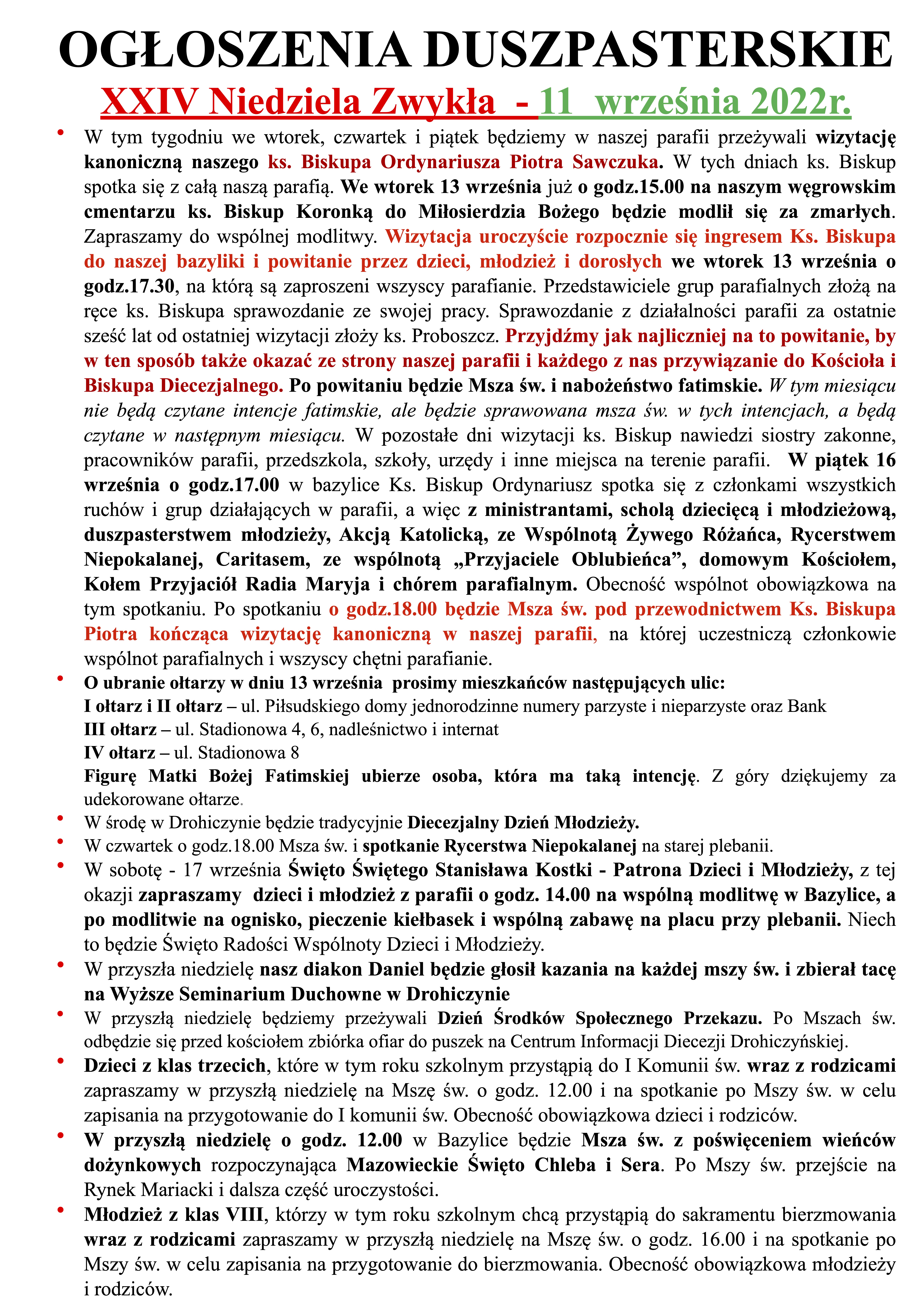 XXIV Niedziela Zwykła – 11 września 2022r.