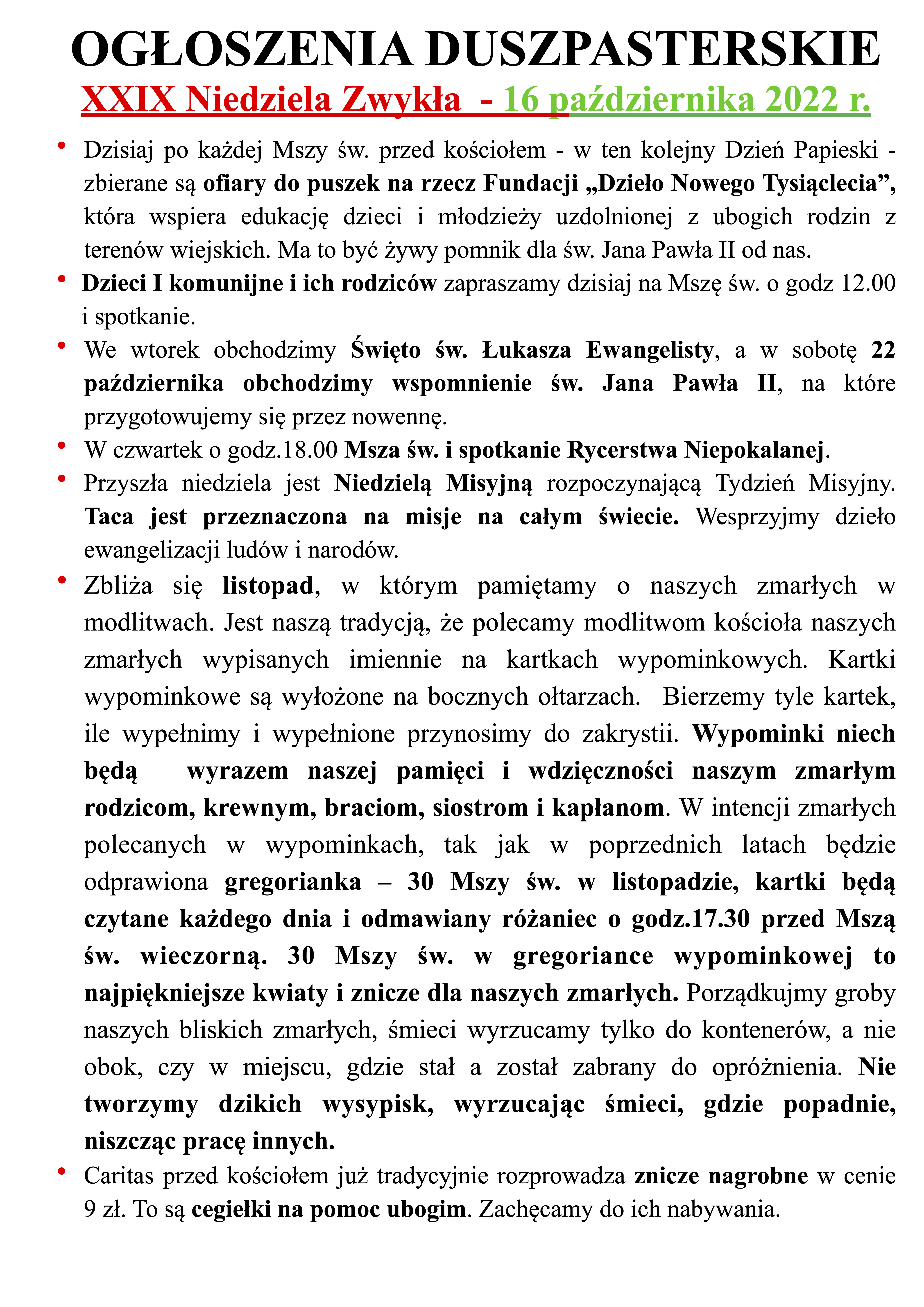 XXIX Niedziela Zwykła – 16 października 2022 r.