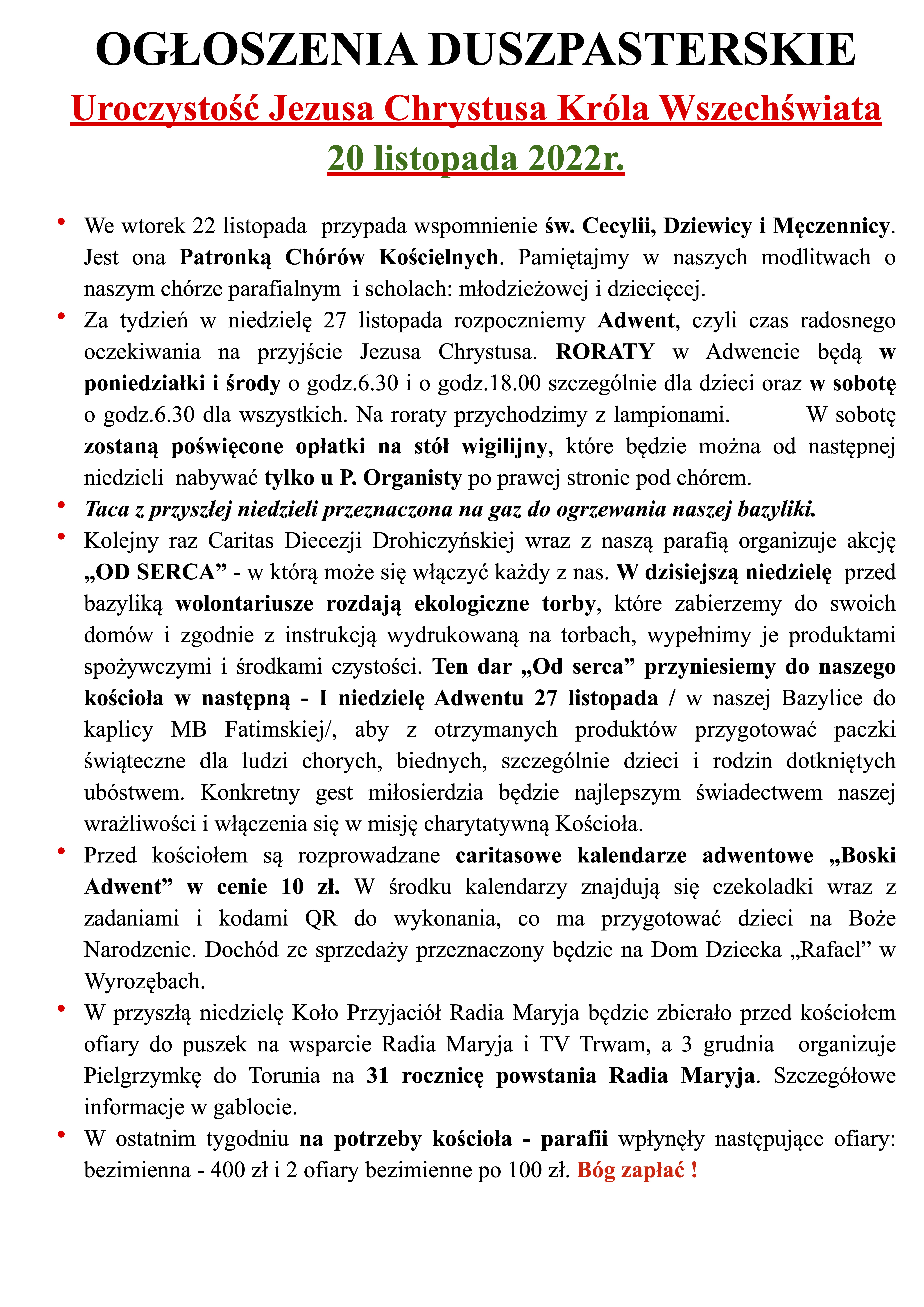 Uroczystość Jezusa Chrystusa Króla Wszechświata – 20 listopada 2022r. przez Ks. Proboszcz / 3 lata temu