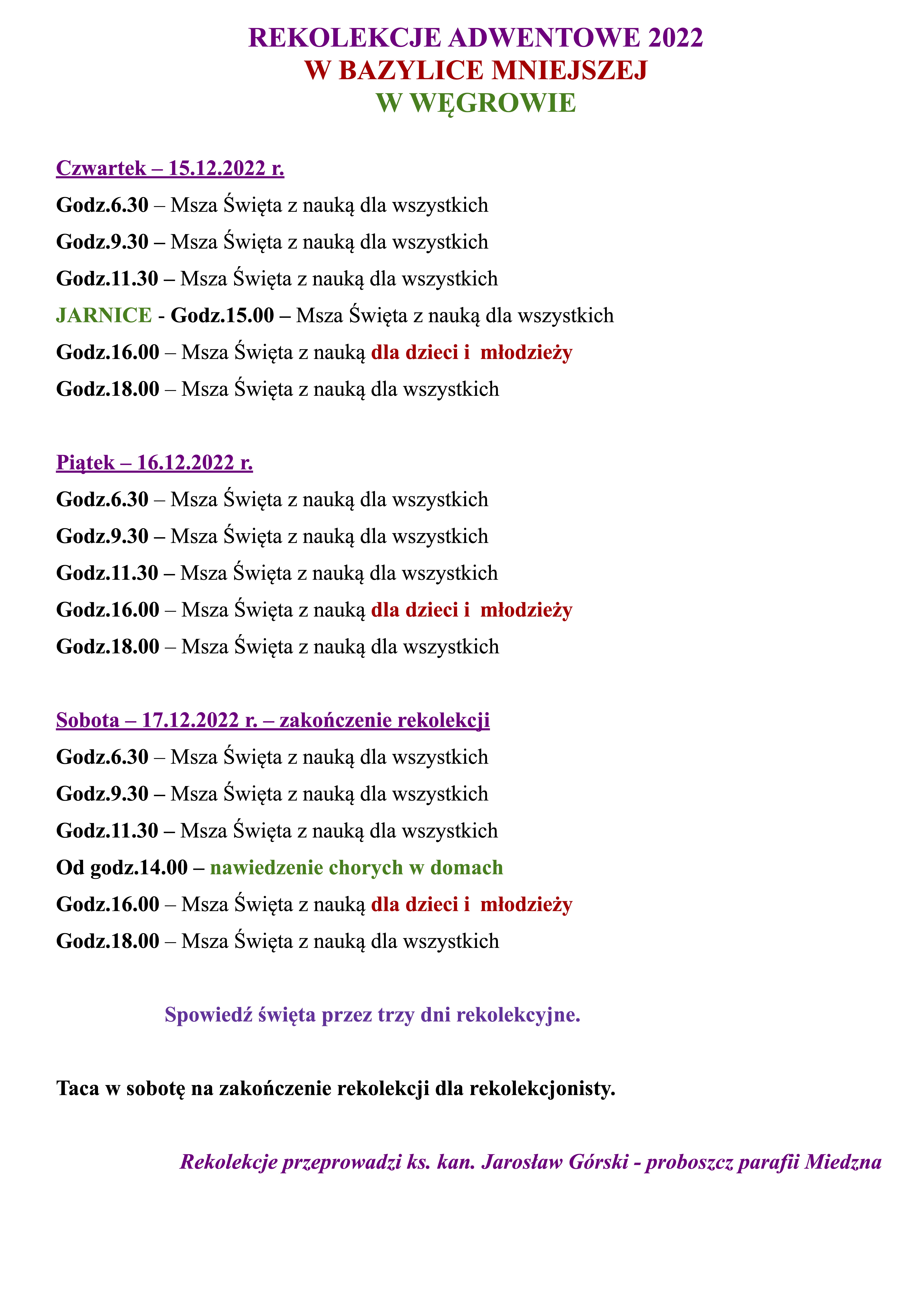 REKOLEKCJE ADWENTOWE 15-17.12.2022 r. W BAZYLICE MNIEJSZEJ W WĘGROWIE przez Ks. Proboszcz / 3 lata temu