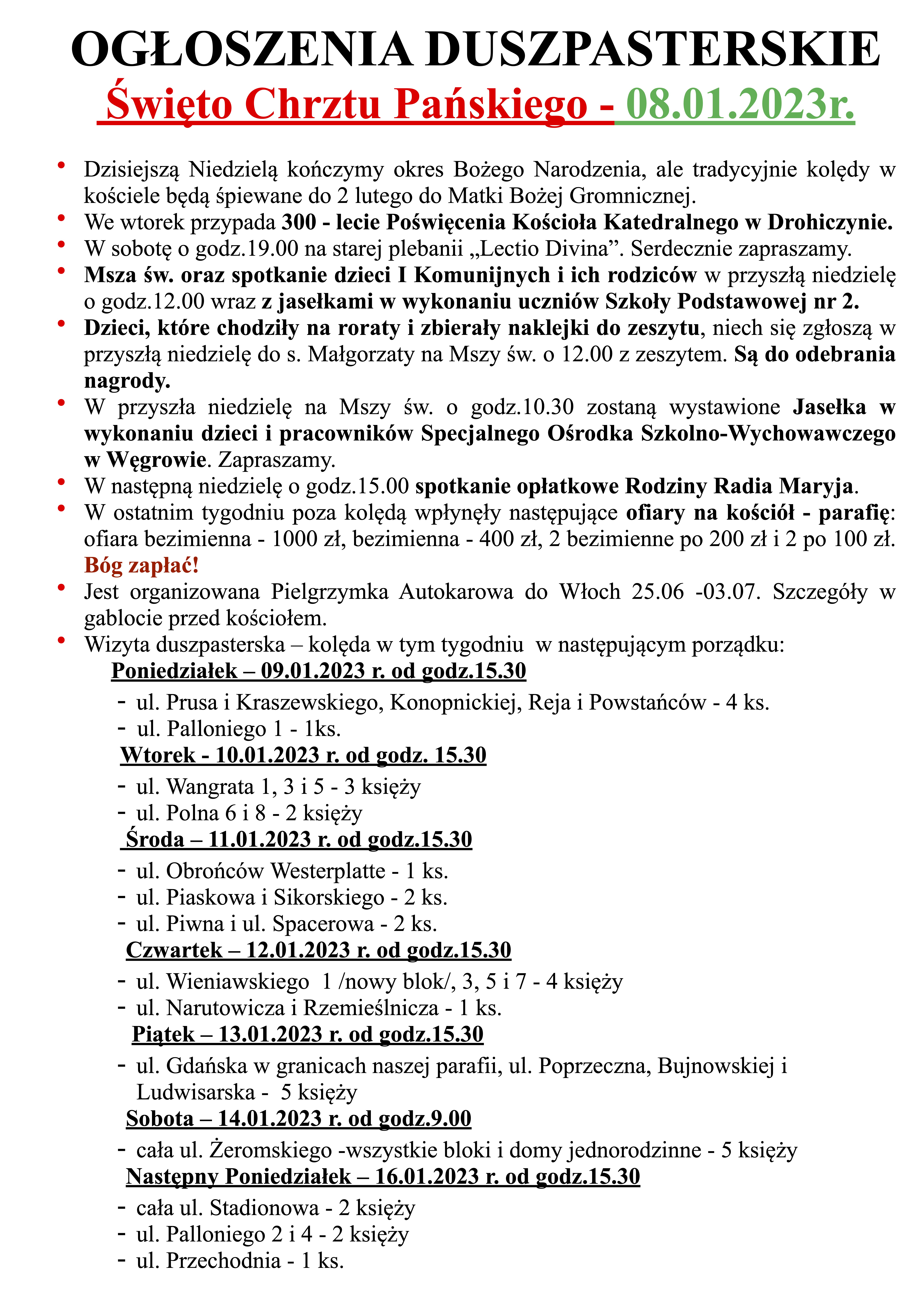 Święto Chrztu Pańskiego – 08.01.2023r.