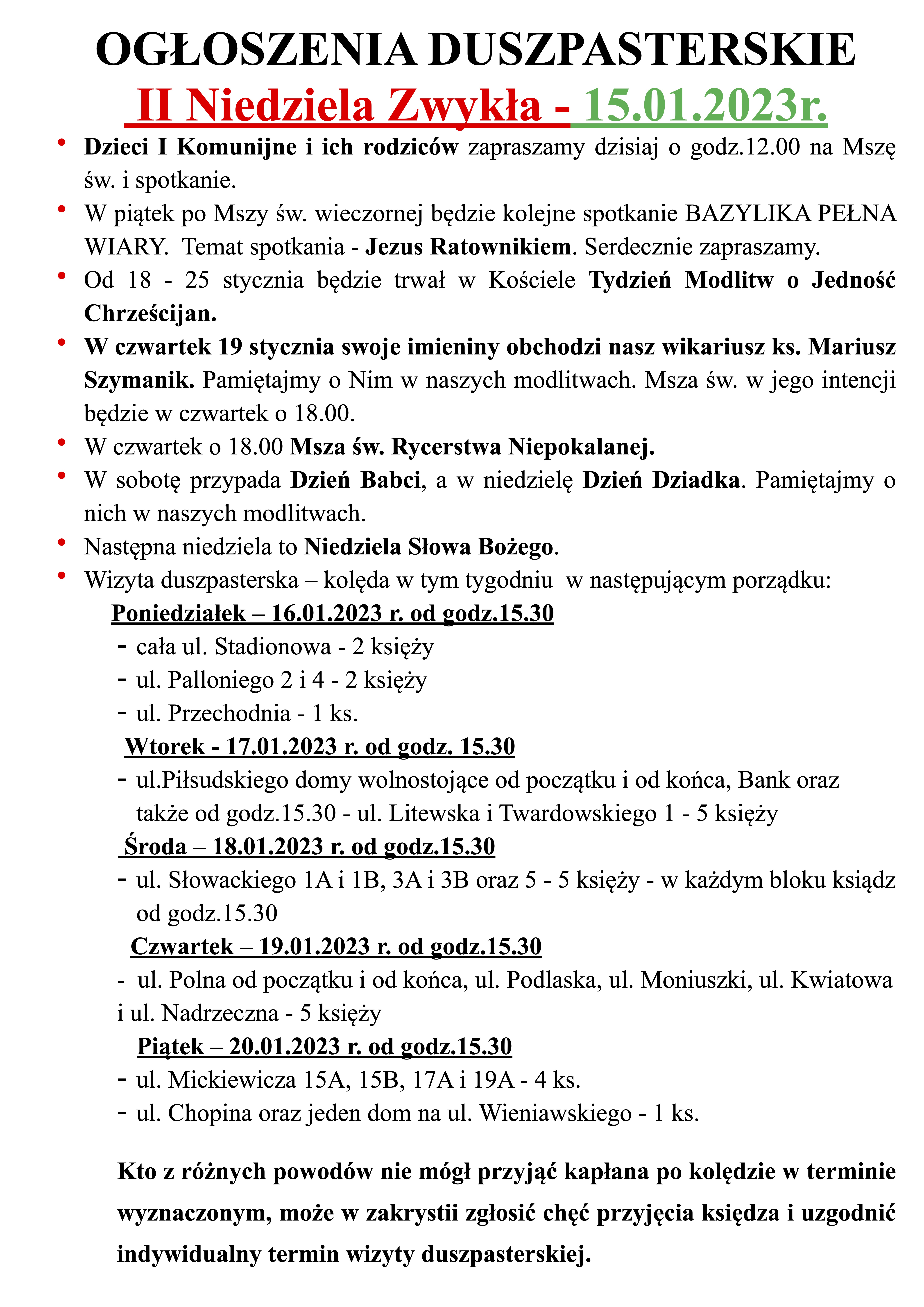 INTENCJE MSZALNE 23.01.-29.01.23r.