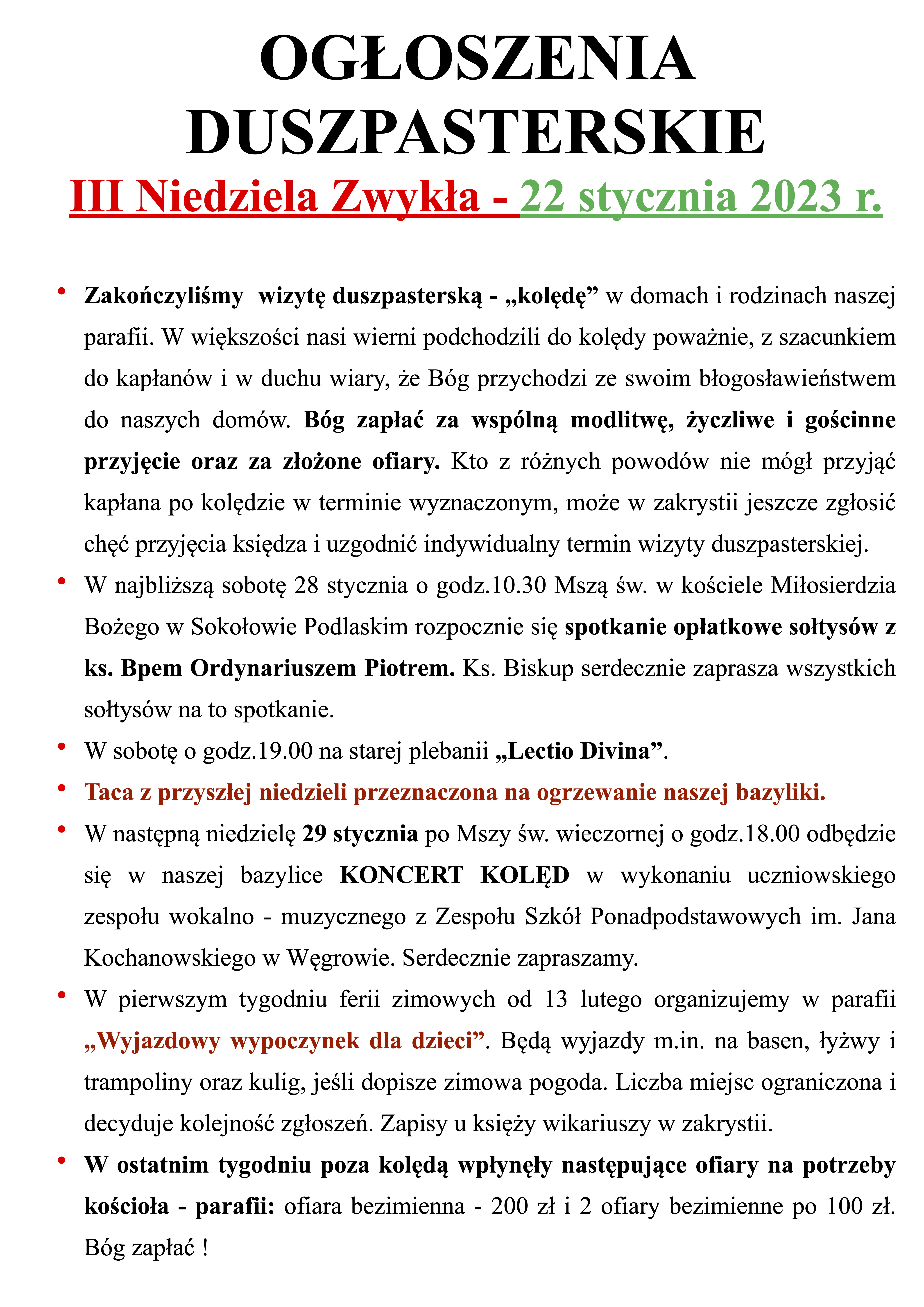 III Niedziela Zwykła – 22 stycznia 2023 r.