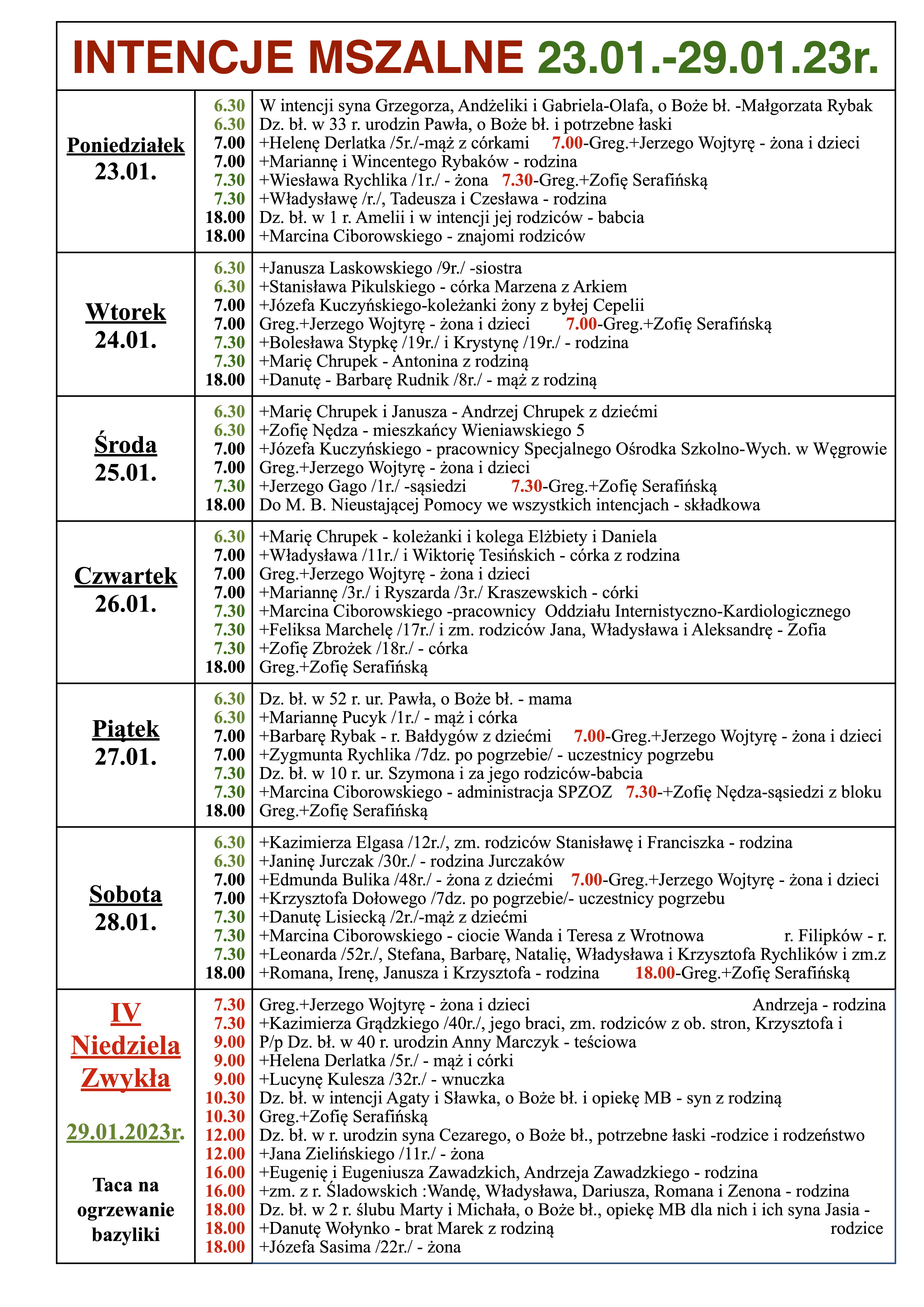 INTENCJE MSZALNE 23.01.-29.01.23r.