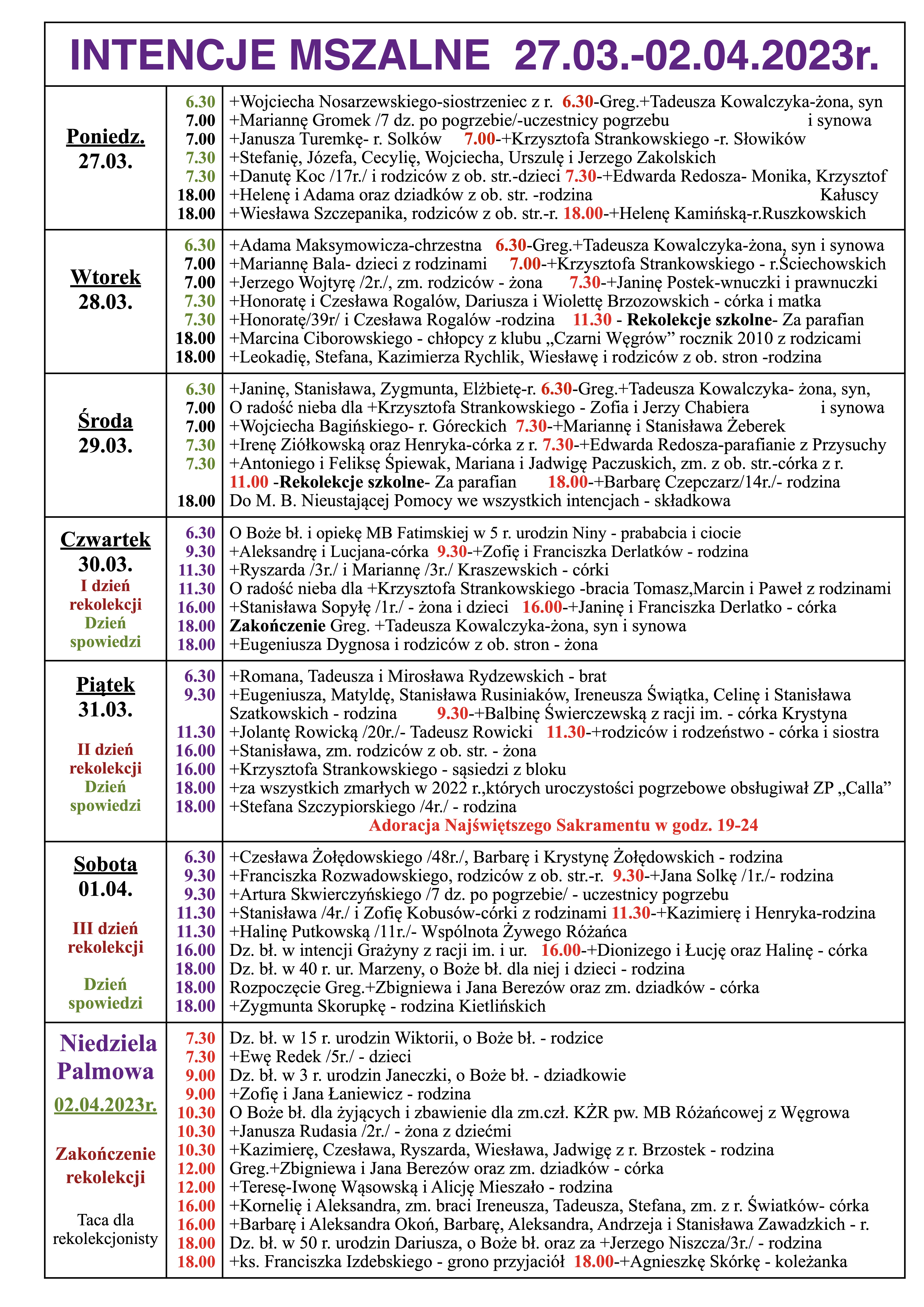 INTENCJE MSZALNE 27.03.-02.04.2023r.
