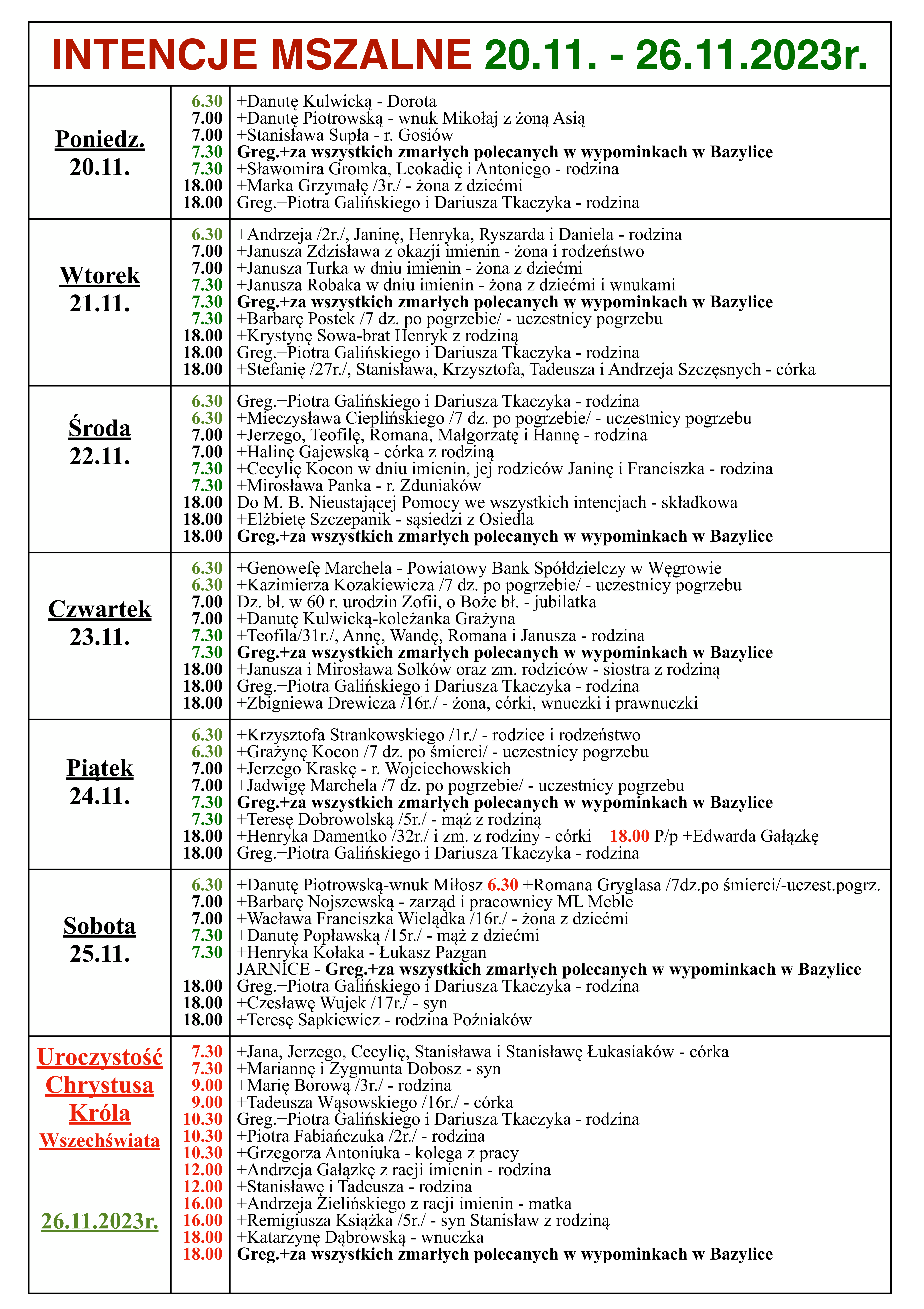 XXXIII Niedziela Zwykła – 19 listopada 2023 r.