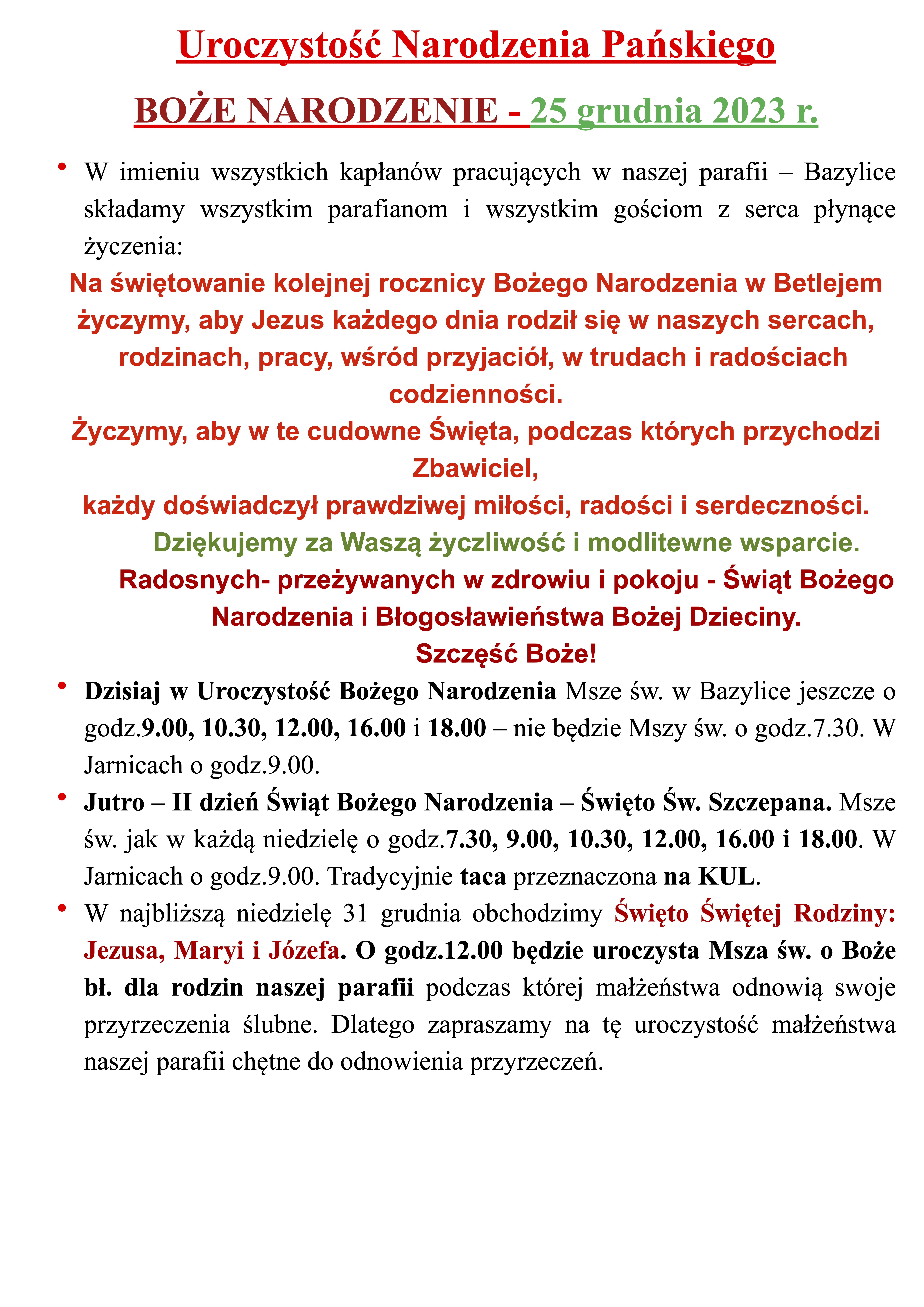 BOŻE NARODZENIE – 25 grudnia 2023 r.- Życzenia