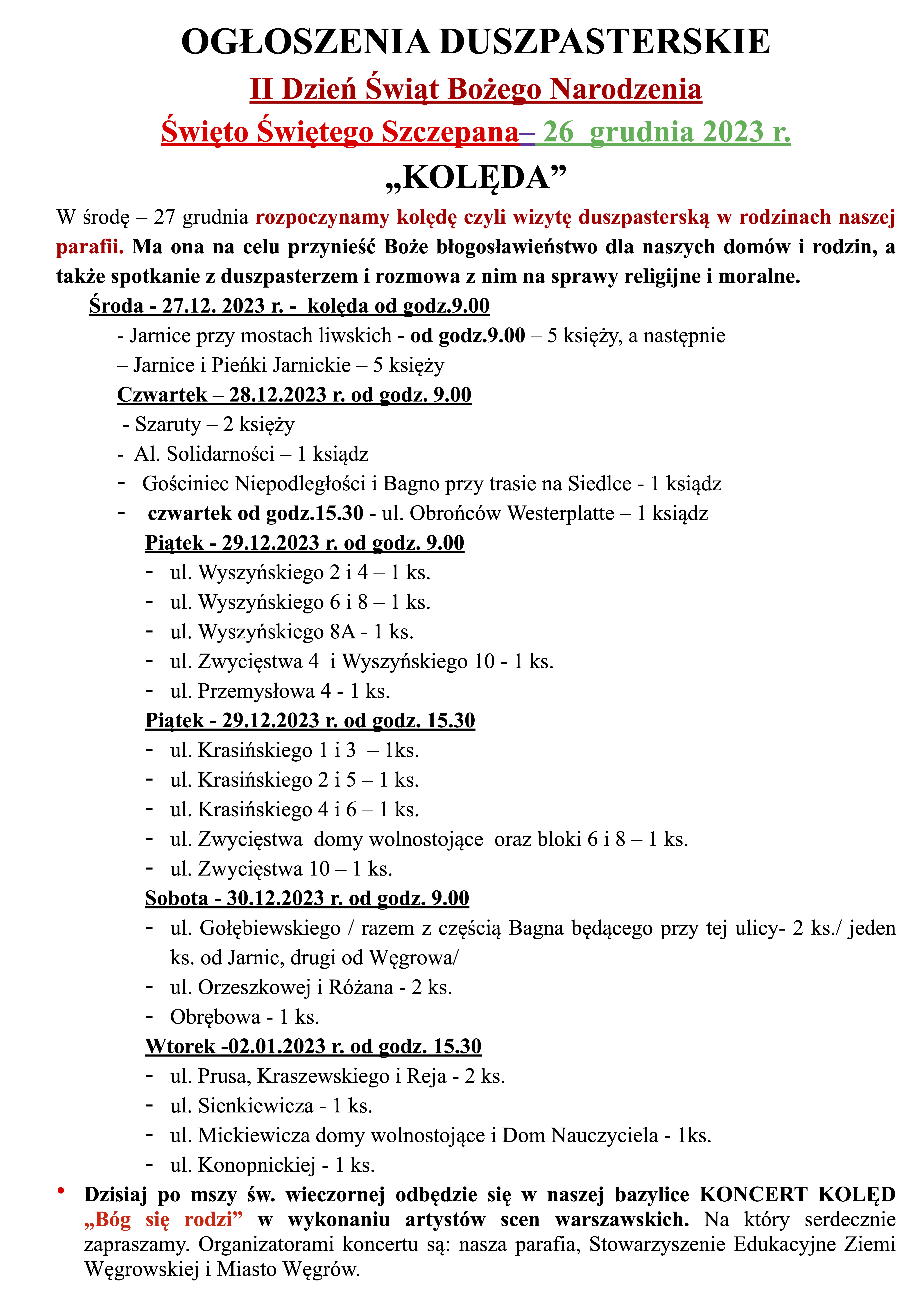 II Dzień Świąt Bożego Narodzenia- Święto Świętego Szczepana– 26 grudnia 2023 r.- „KOLĘDA” przez Ks. Proboszcz / 2 lata temu