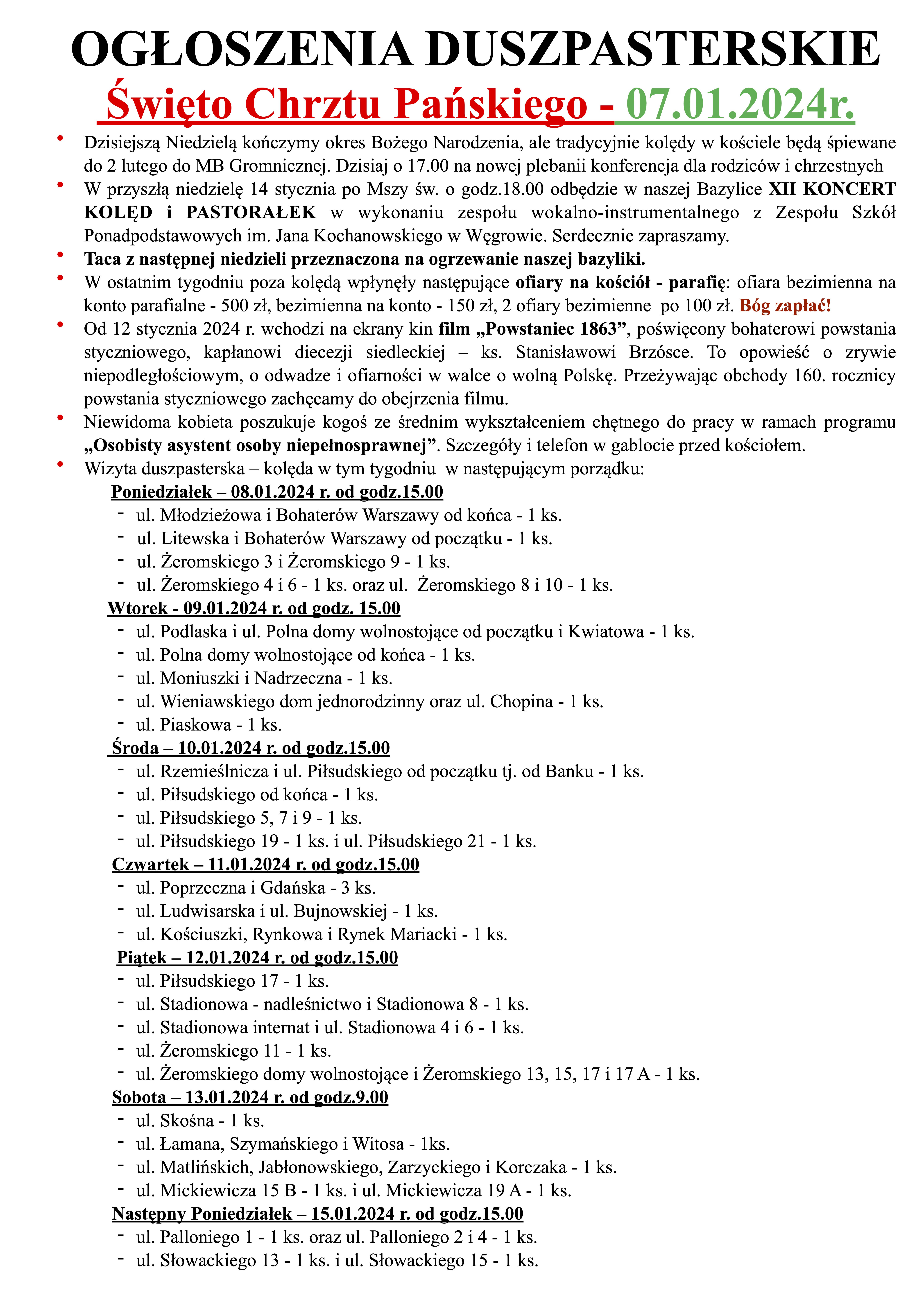 Święto Chrztu Pańskiego – 07.01.2024r.