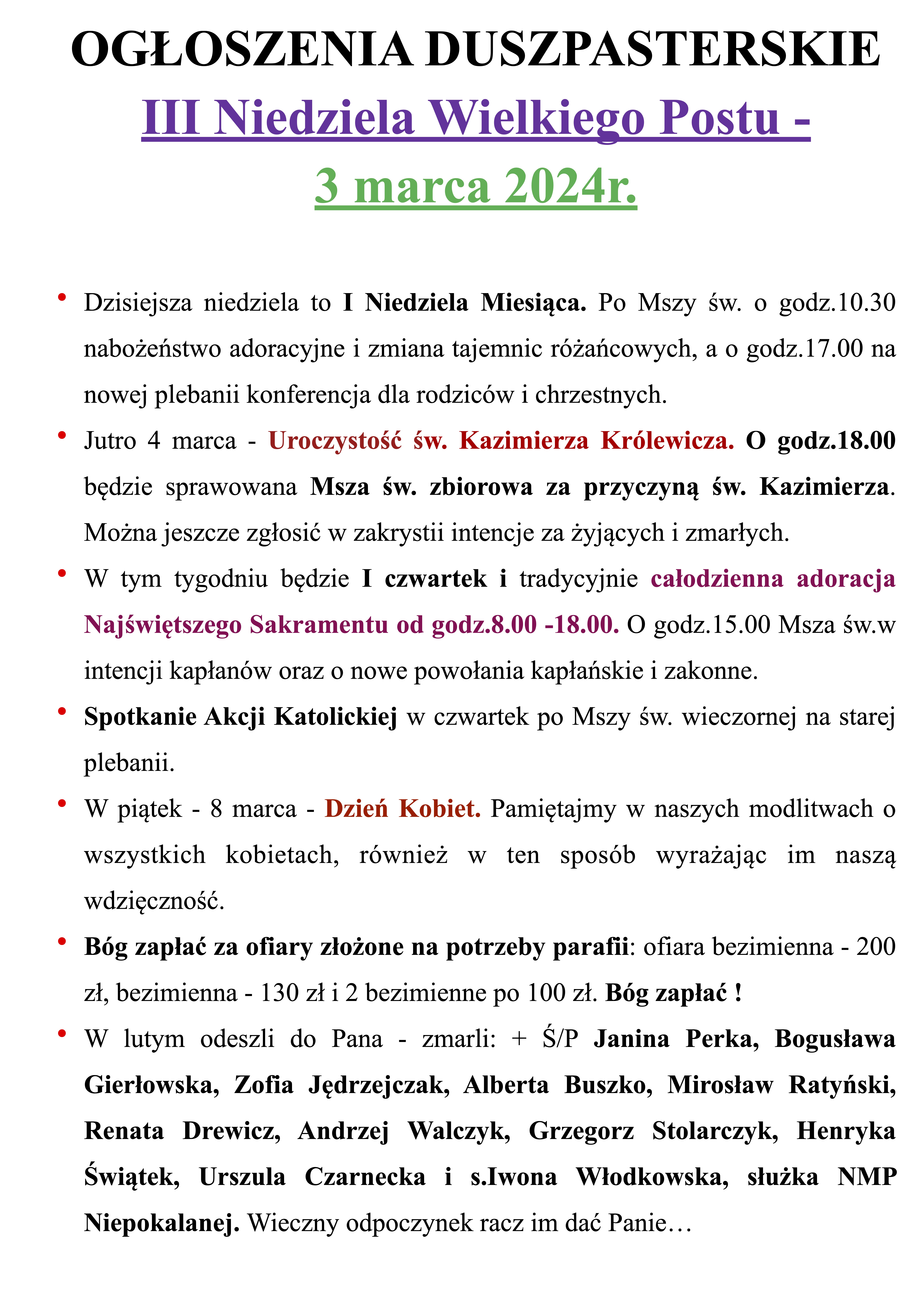 III Niedziela Wielkiego Postu-3 marca 2024r.