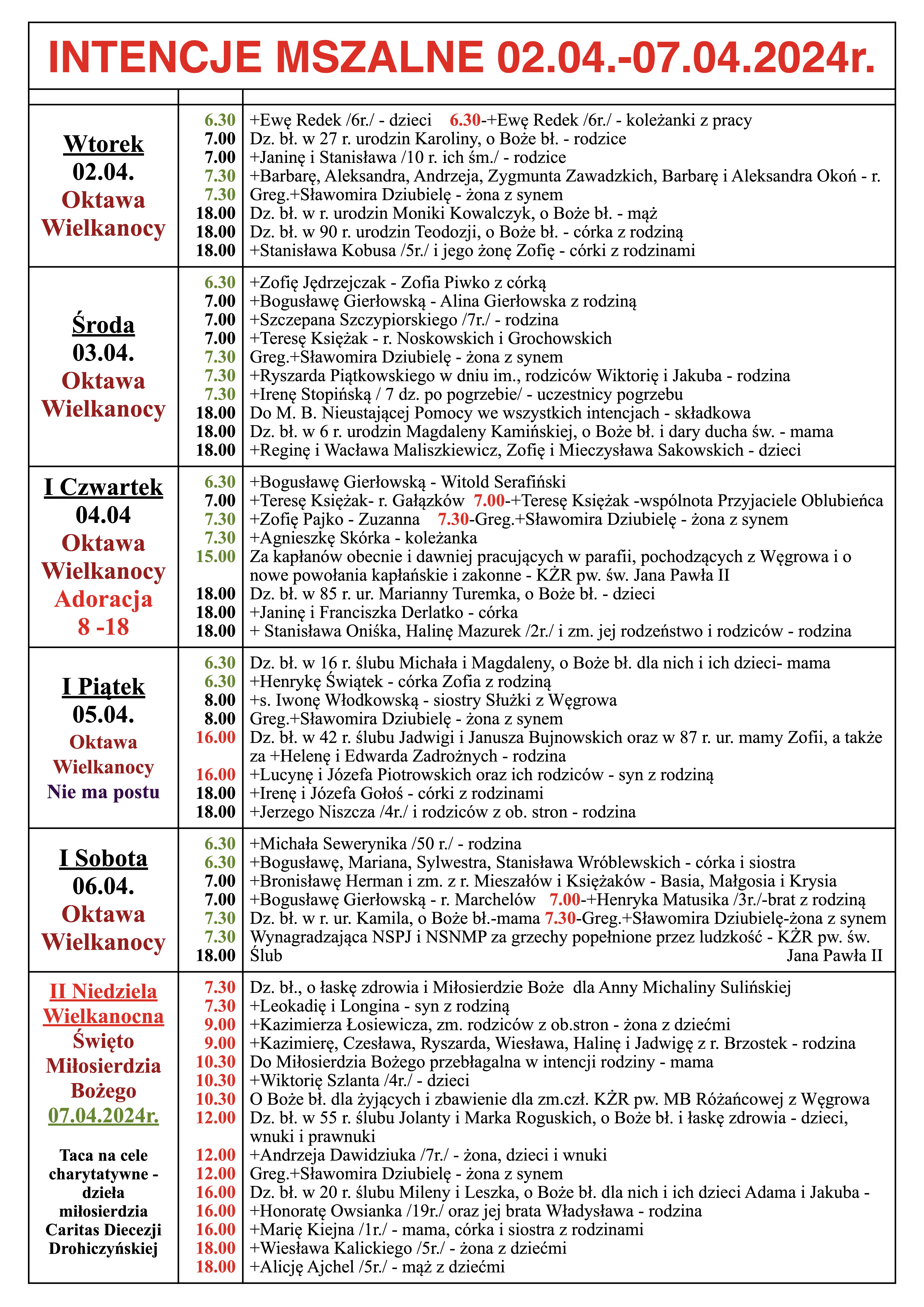 INTENCJE MSZALNE 02.04.-07.04.2024r.