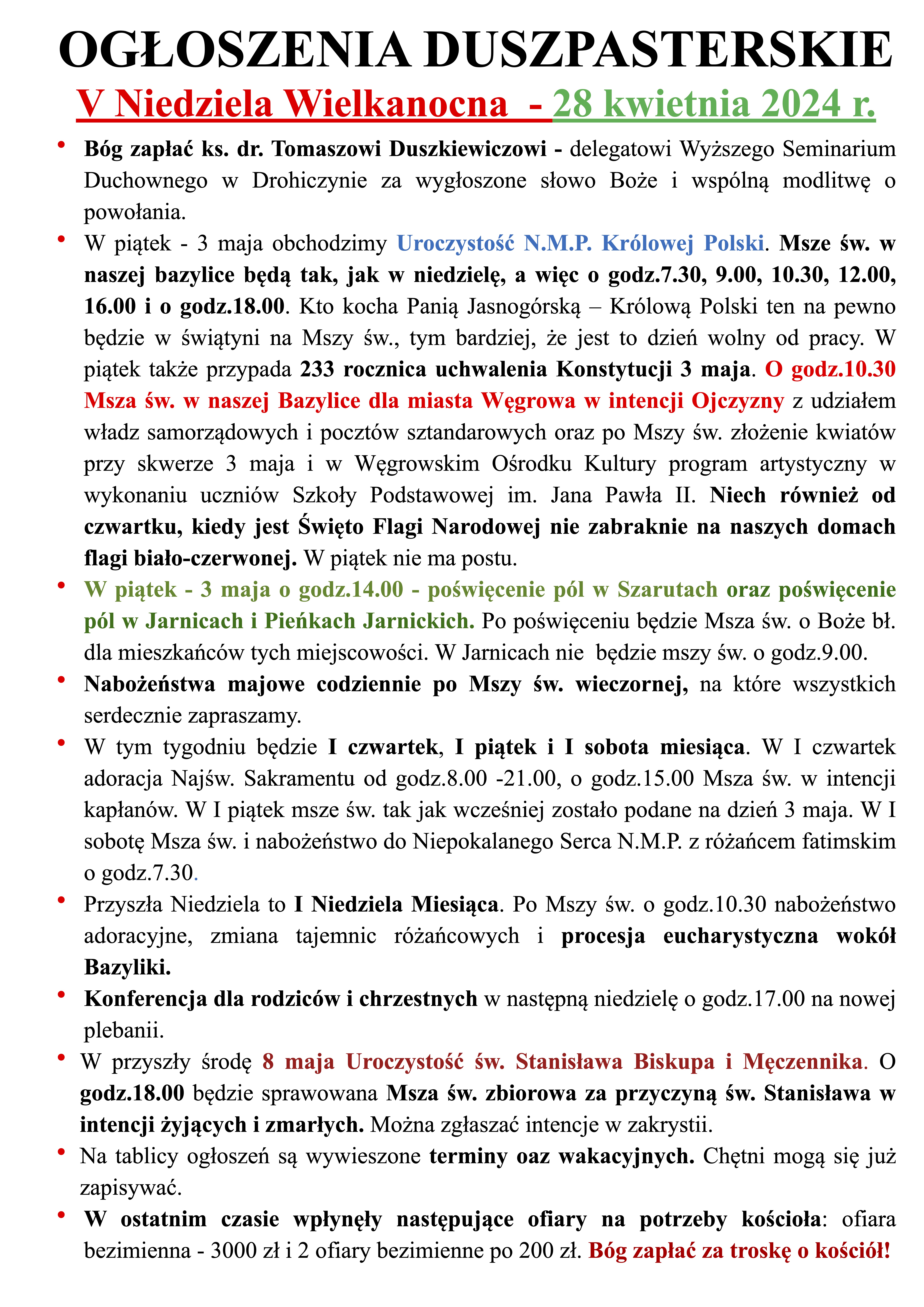 V Niedziela Wielkanocna – 28 kwietnia 2024 r.