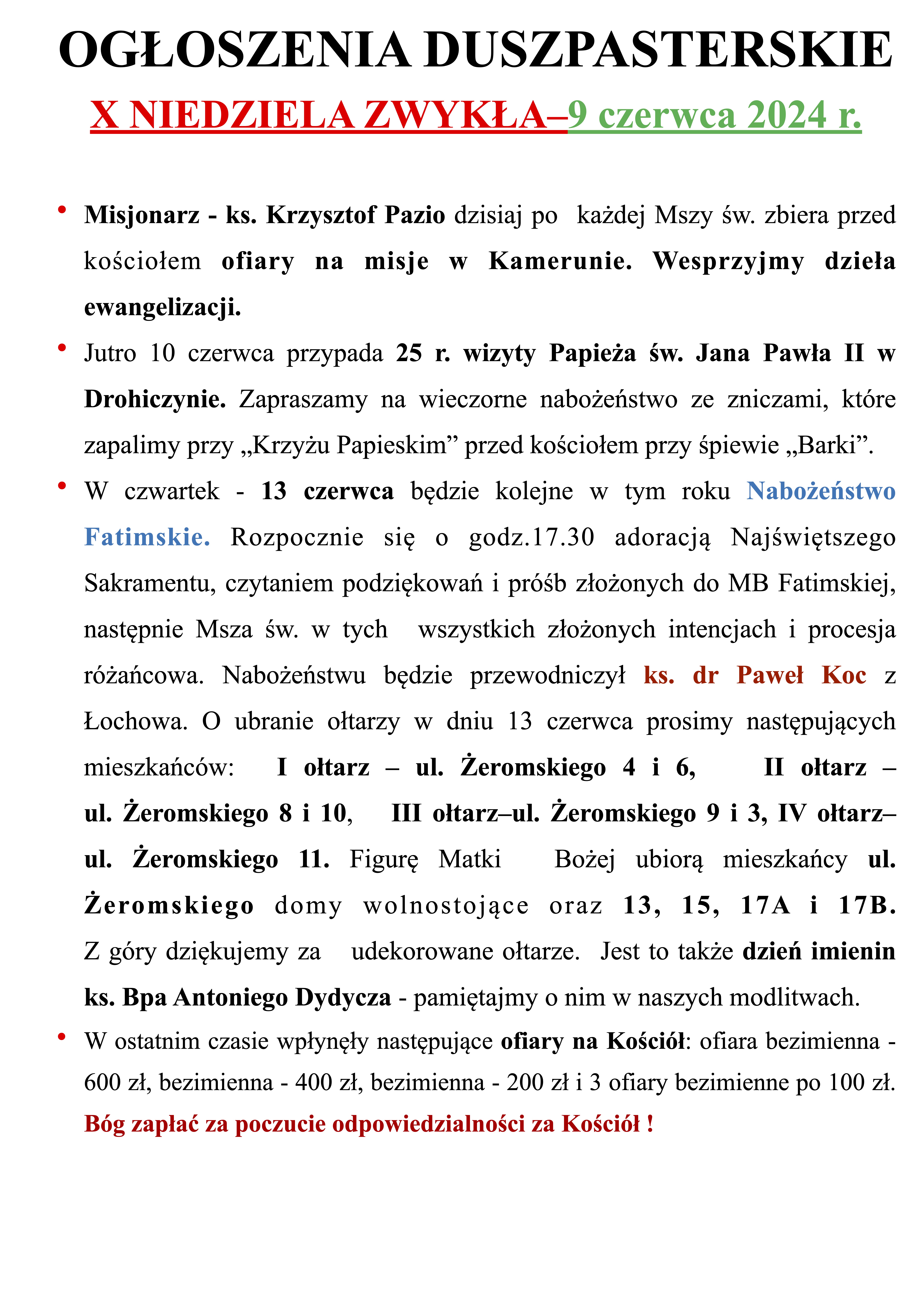 X NIEDZIELA ZWYKŁA–9 czerwca 2024 r.