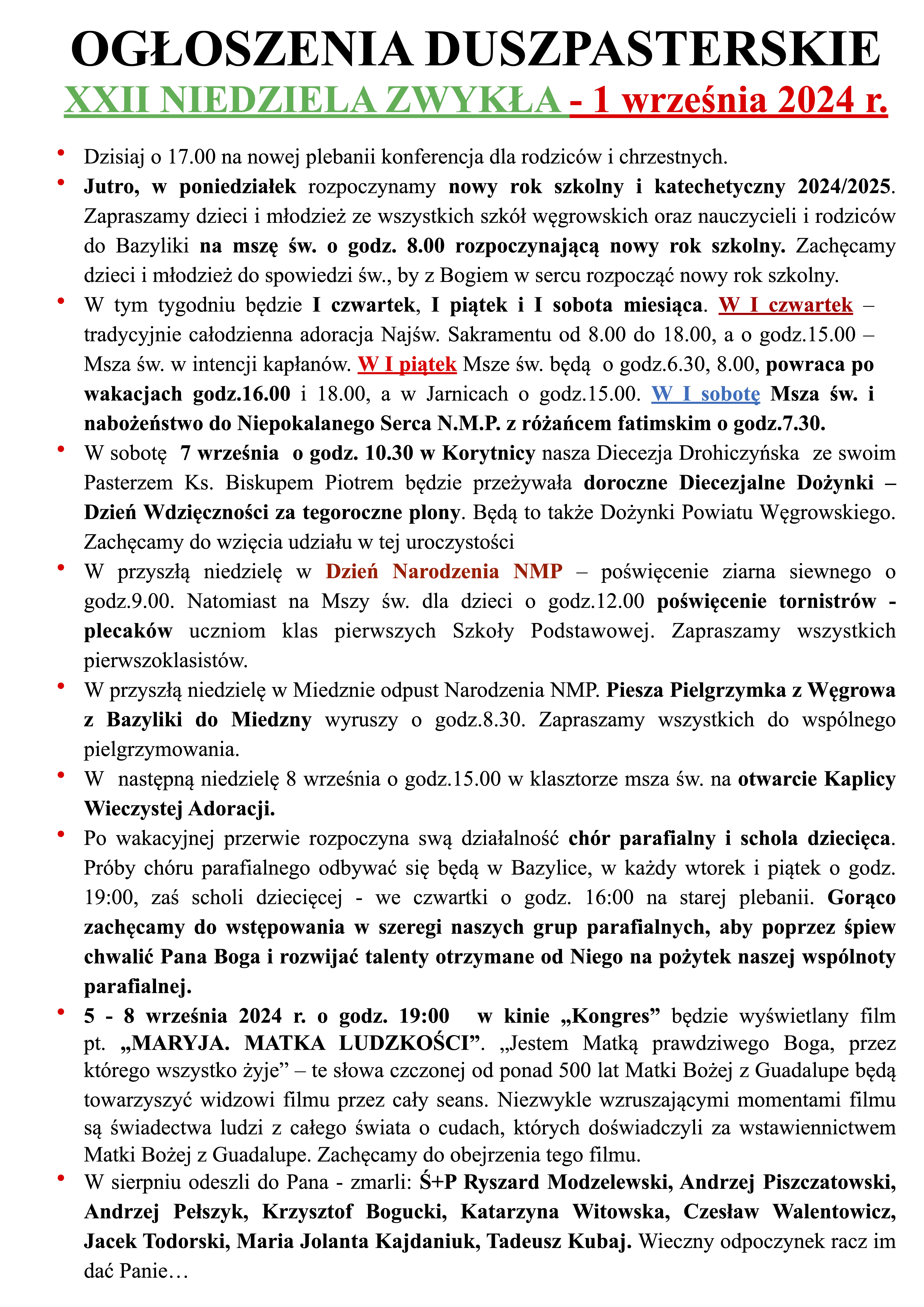 • Ogłoszenia parafialne