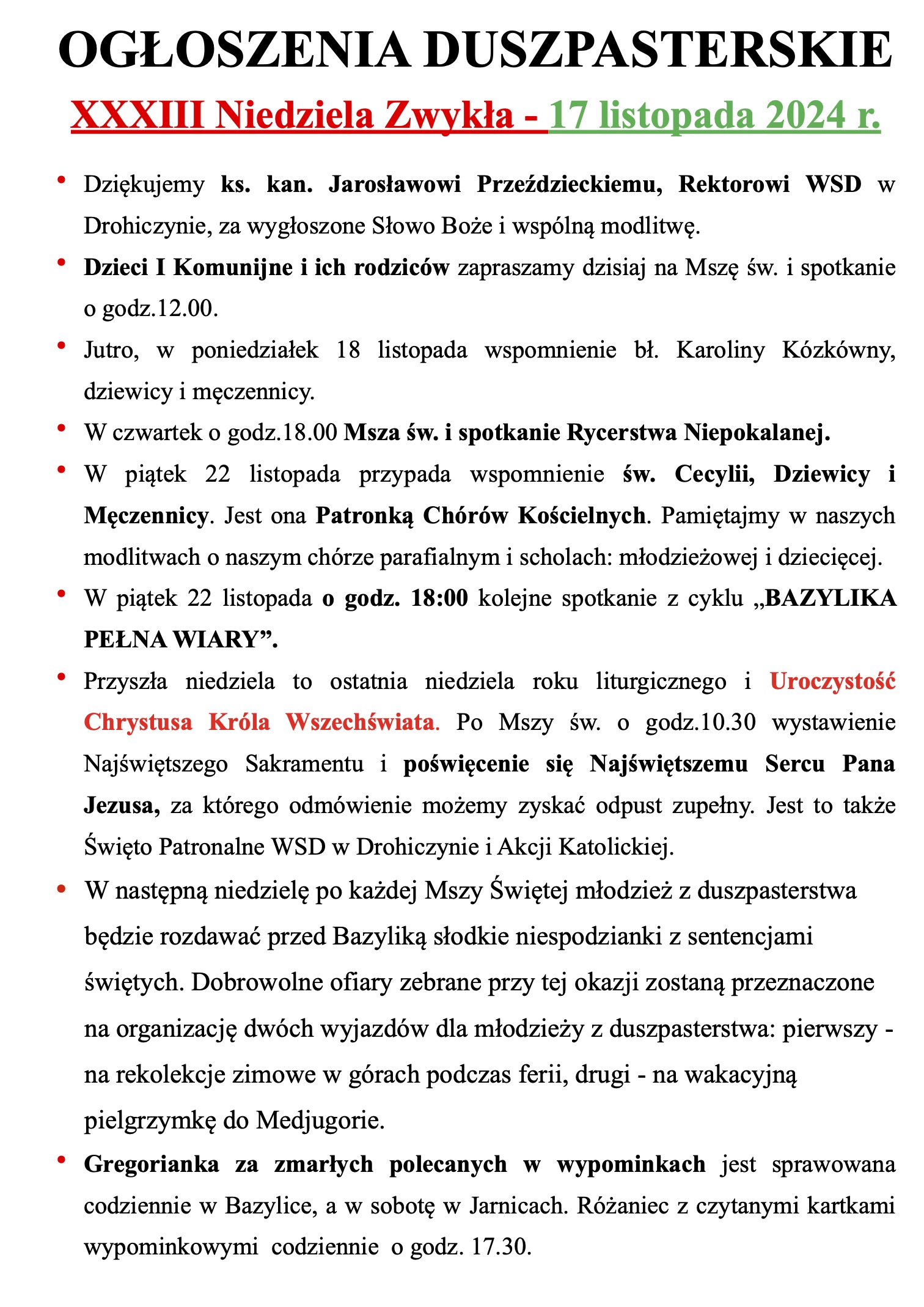 33 Niedziela Zwykła – 17 listopada 2024 r.