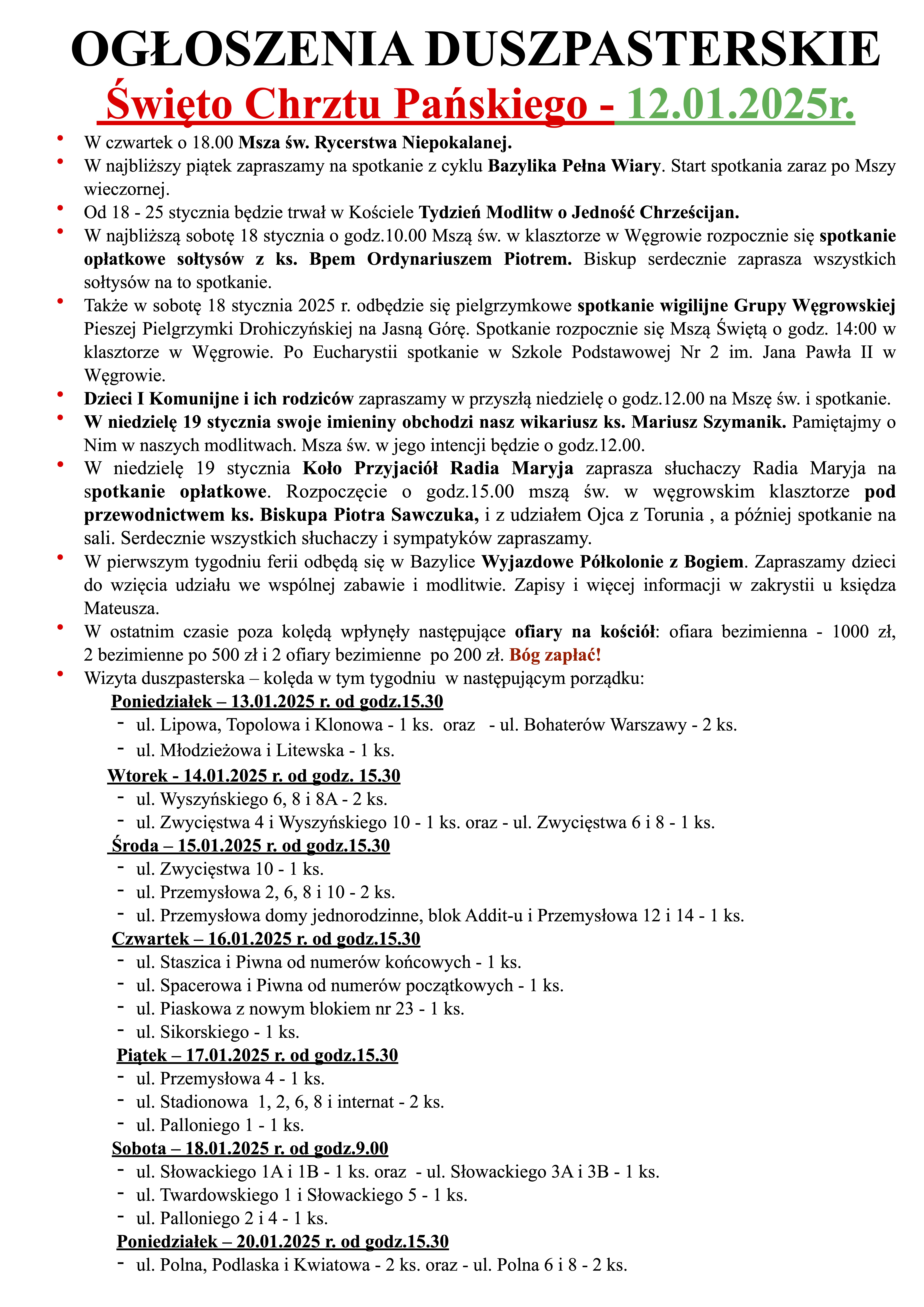 Święto Chrztu Pańskiego – 12.01.2025r.