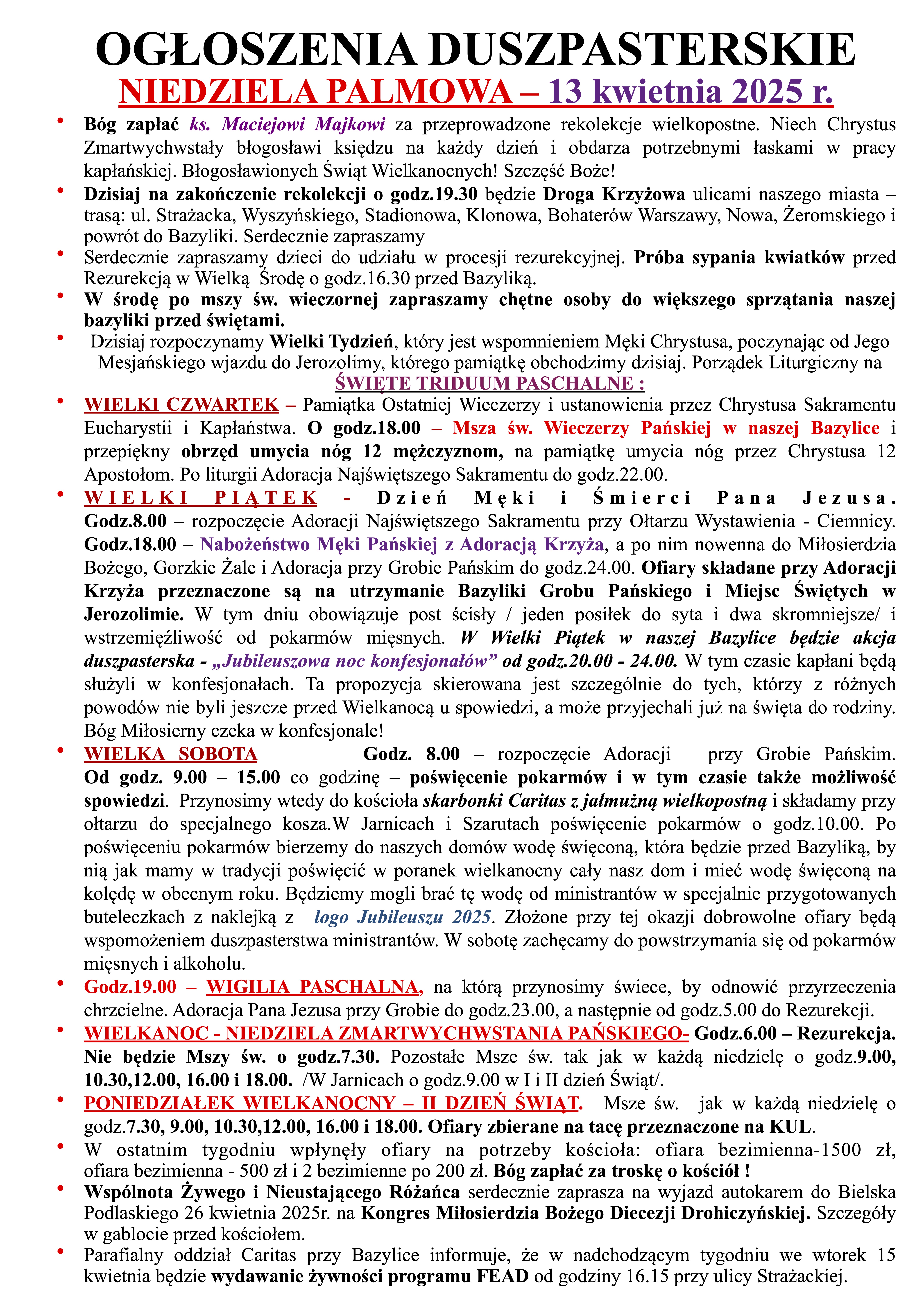 NIEDZIELA PALMOWA – 13 kwietnia 2025 r.