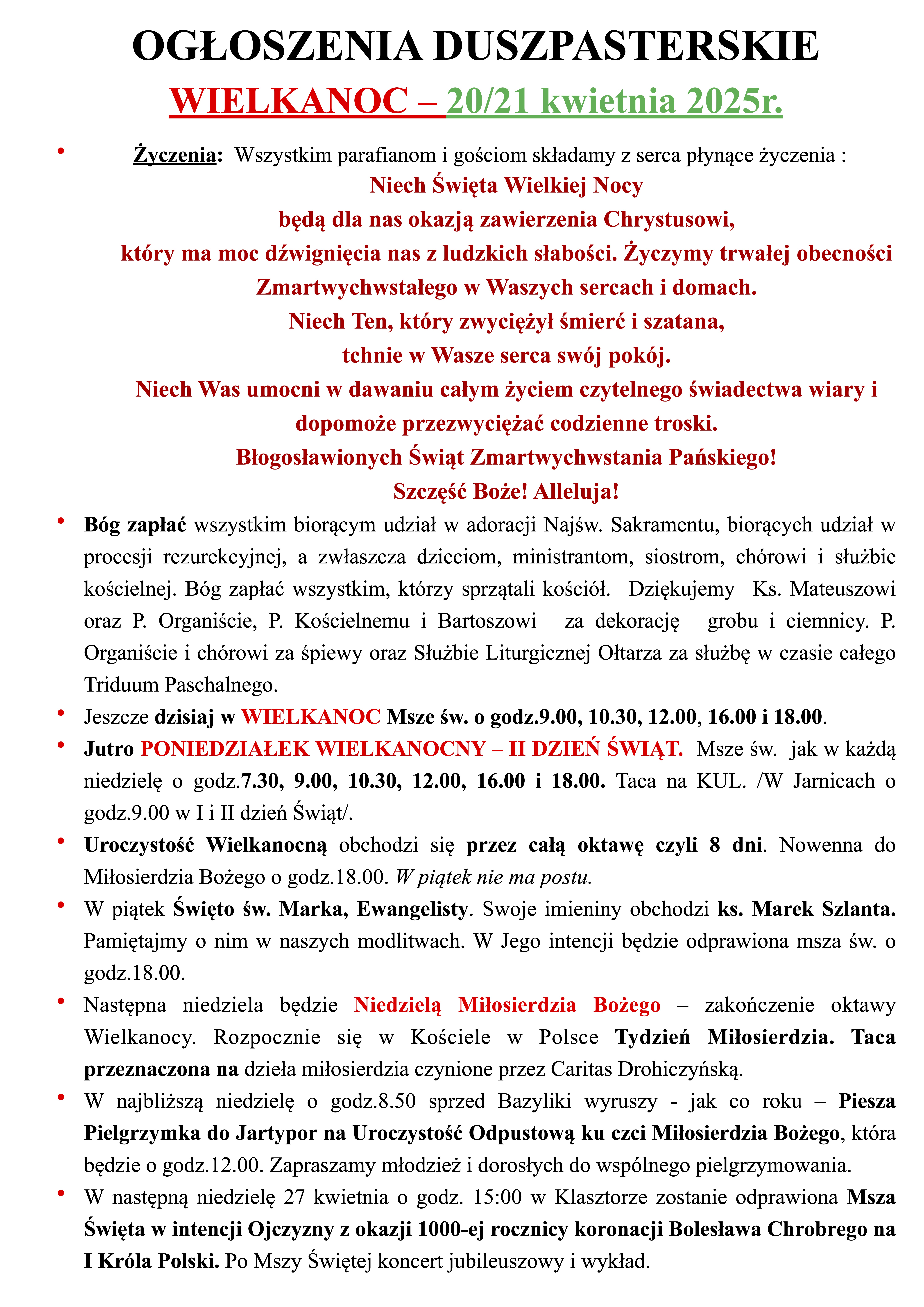 WIELKANOC – 20/21 kwietnia 2025r.
