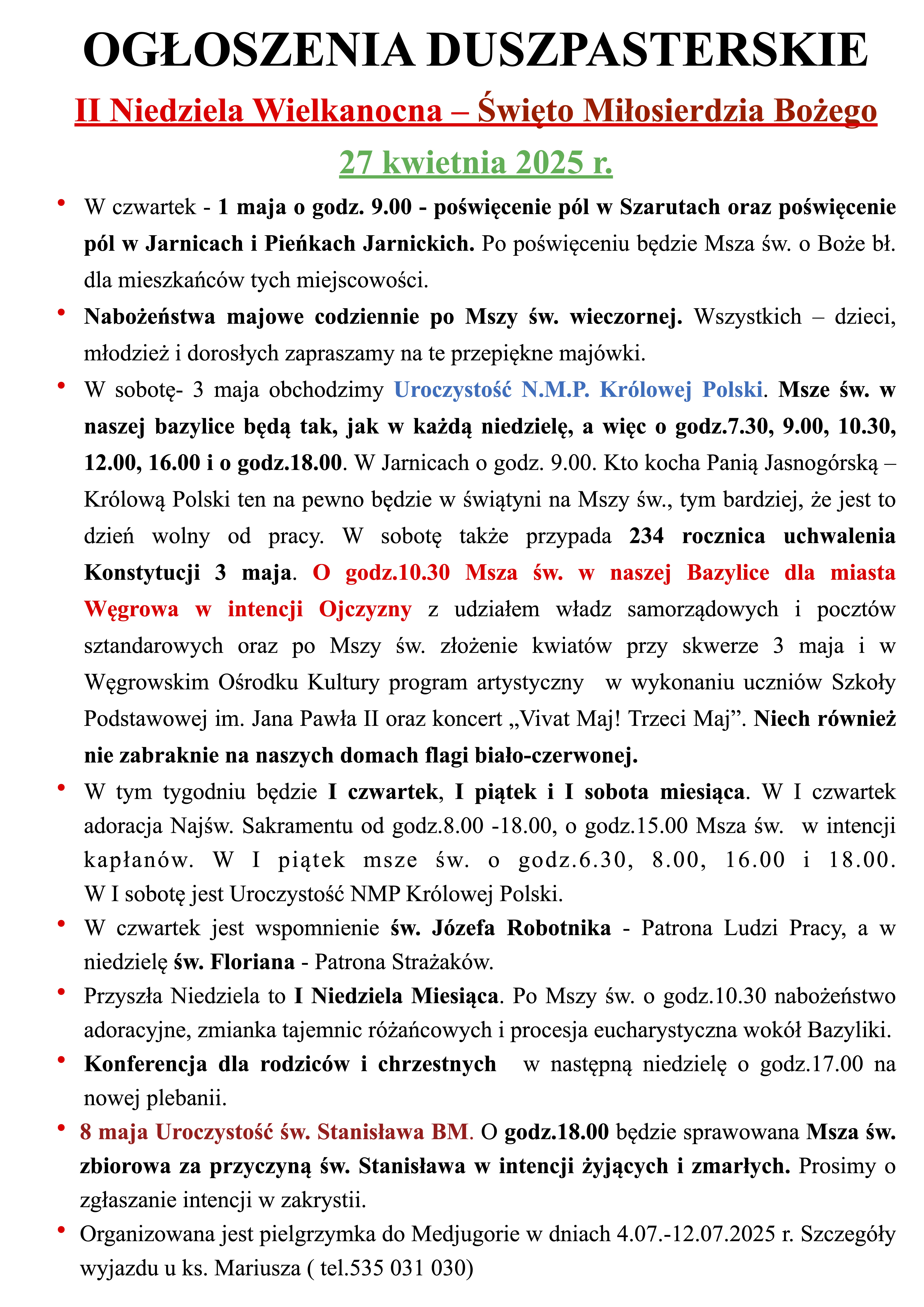 II Niedziela Wielkanocna – Święto Miłosierdzia Bożego- 27 kwietnia 2025 r. przez Ks. Proboszcz / 6 miesięcy temu