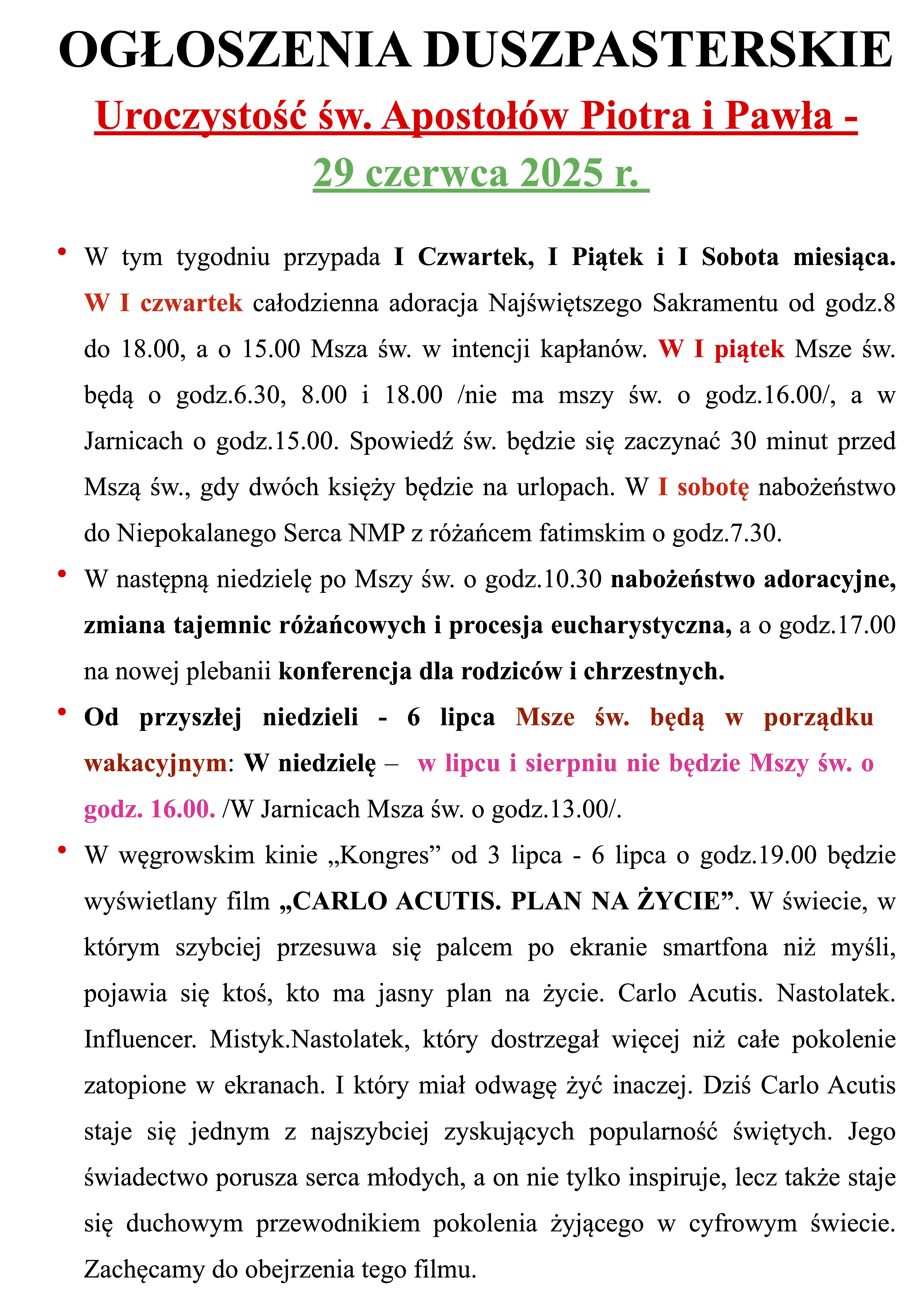 Uroczystość św. Apostołów Piotra i Pawła – 29 czerwca 2025 r.