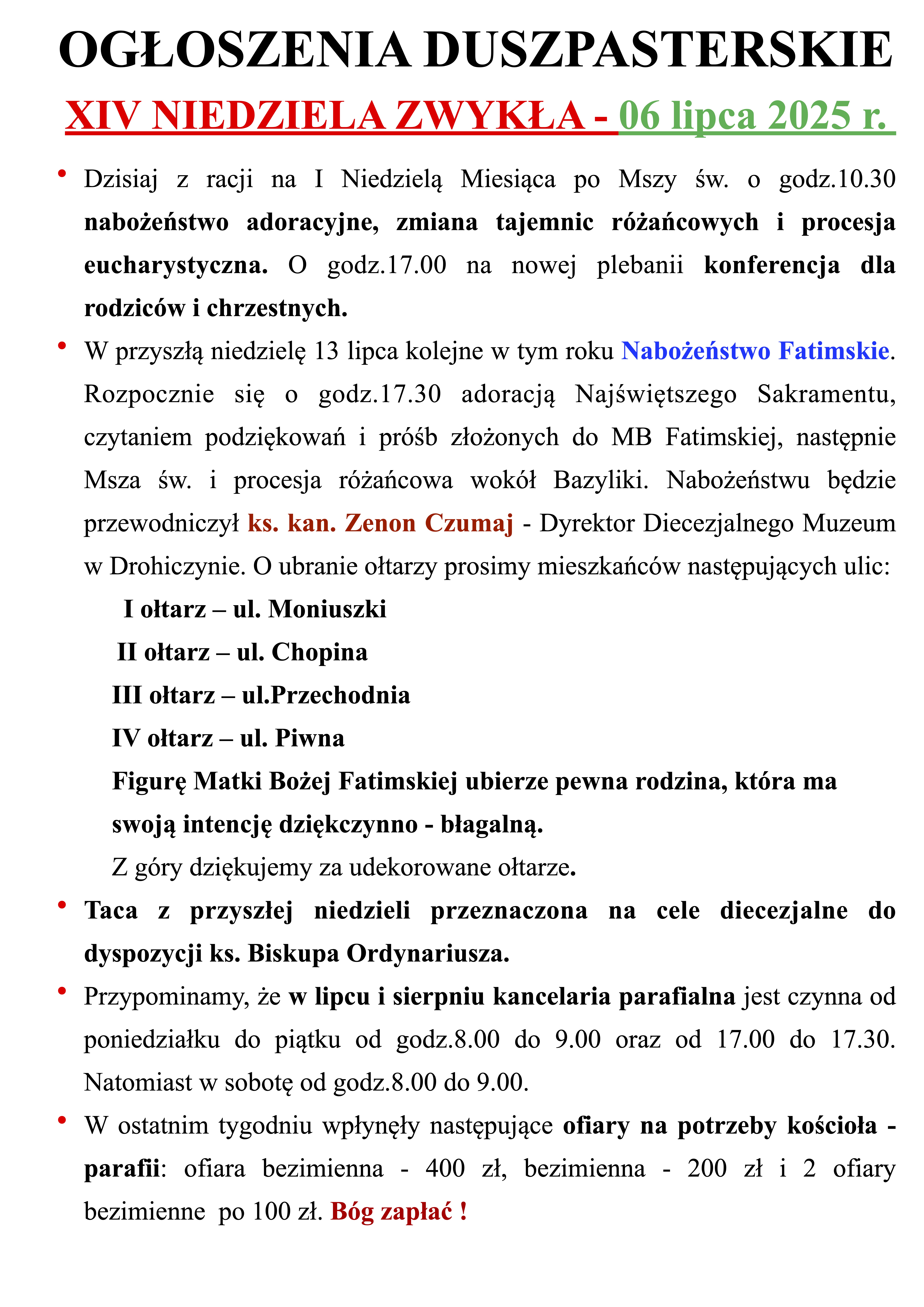 XIV NIEDZIELA ZWYKŁA – 06 lipca 2025 r.