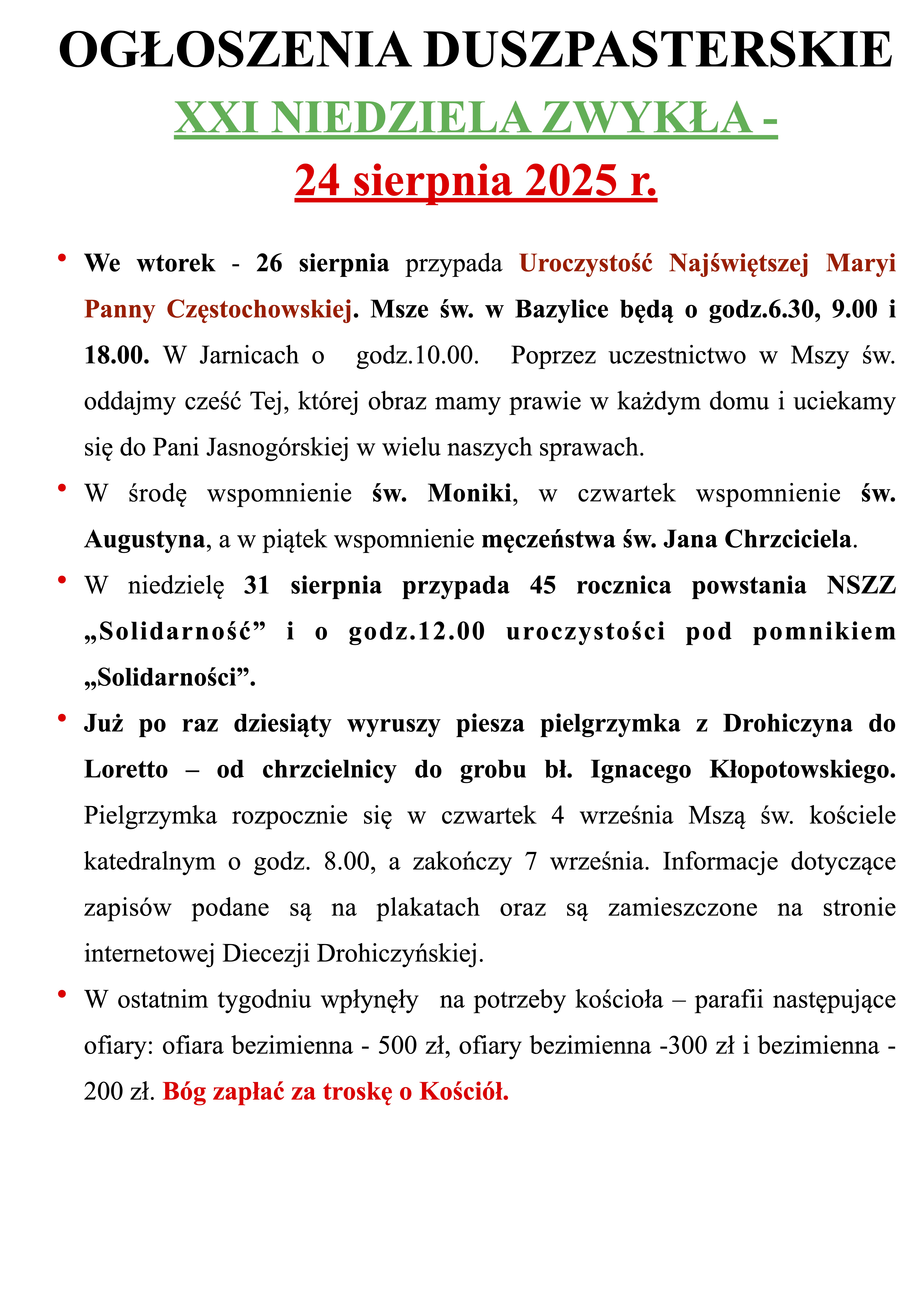 21. NIEDZIELA ZWYKŁA – 24 sierpnia 2025 r.