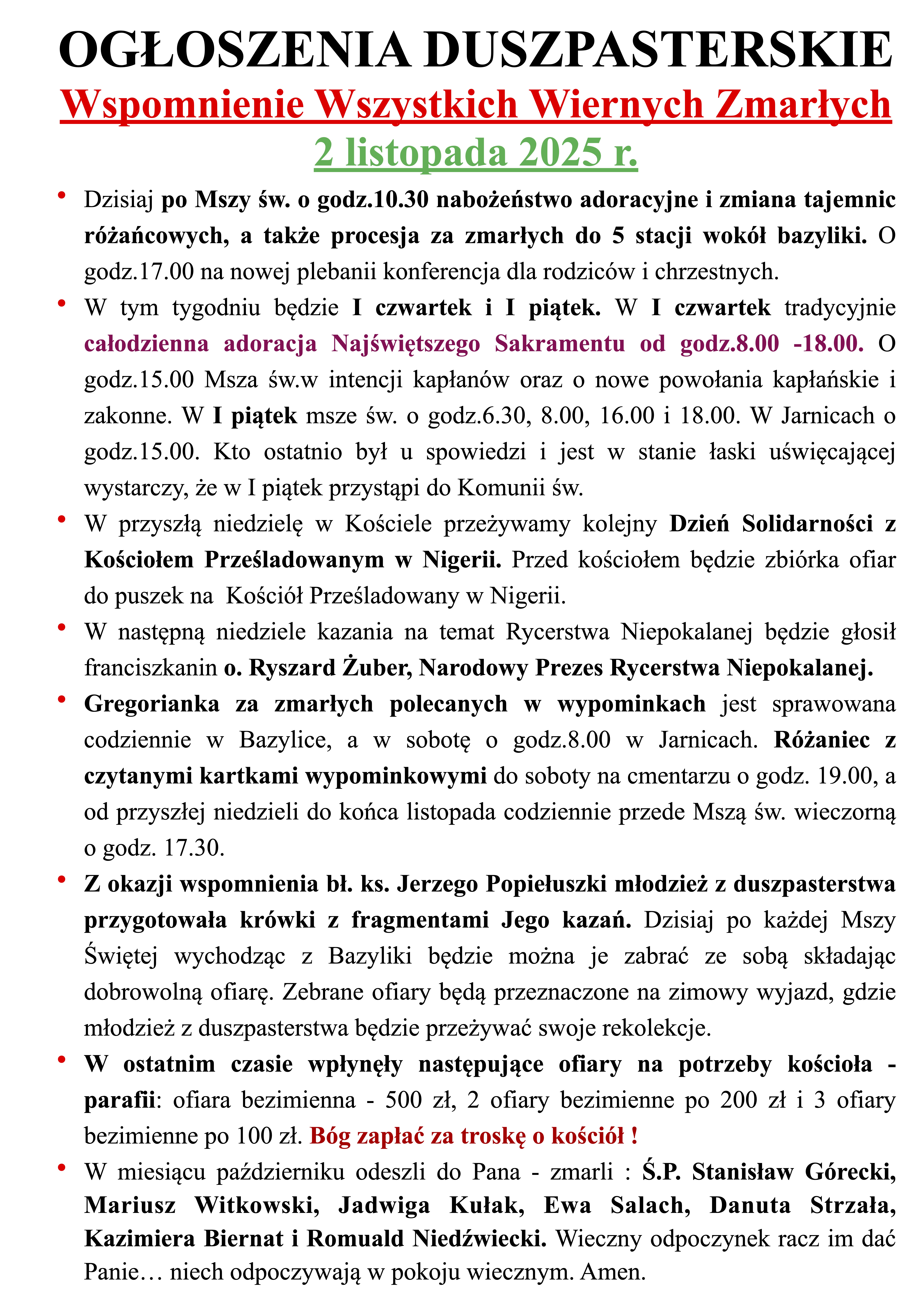 Wspomnienie Wszystkich Wiernych Zmarłych-2 listopada 2025 r.