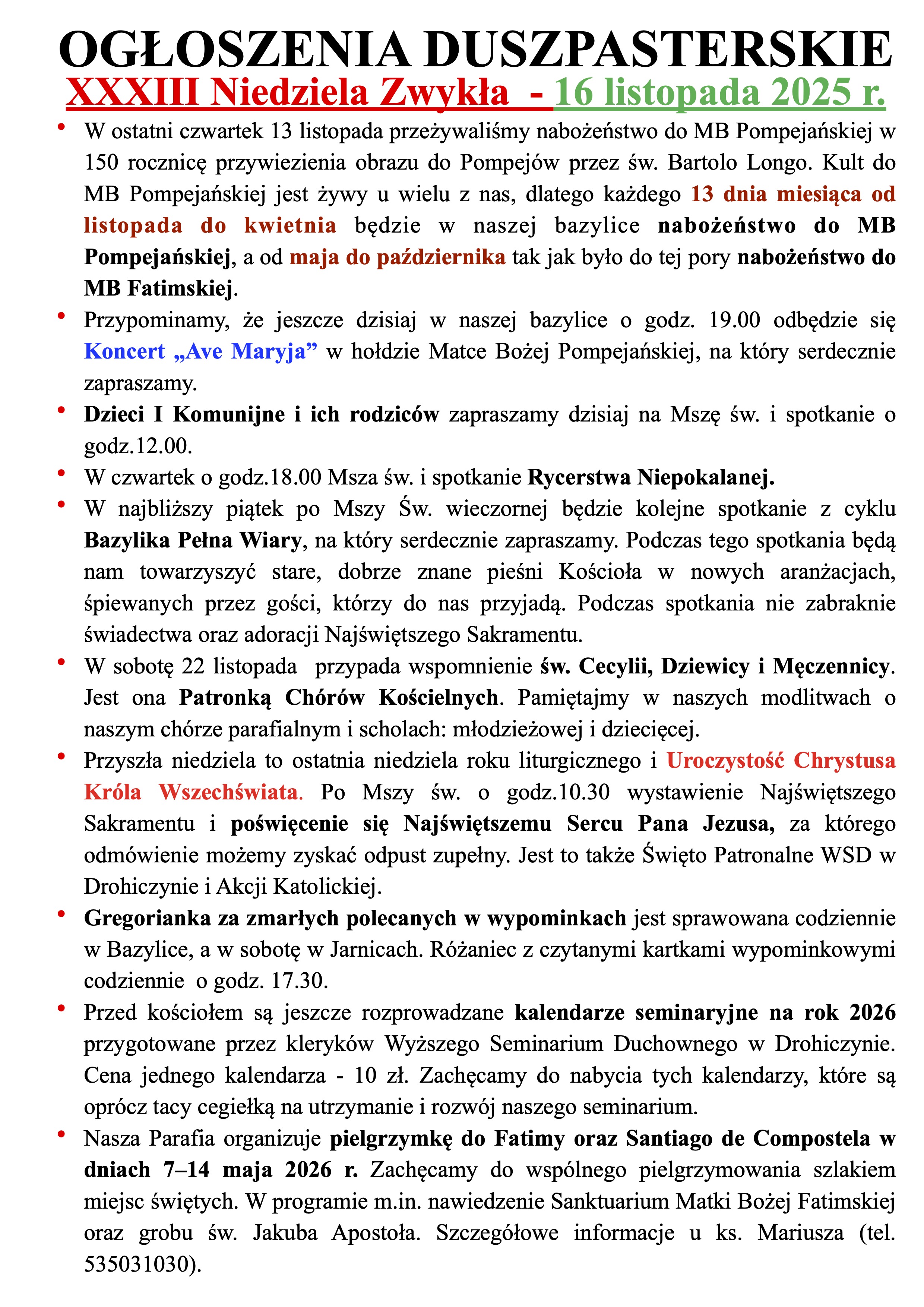 33. Niedziela Zwykła – 16 listopada 2025 r.