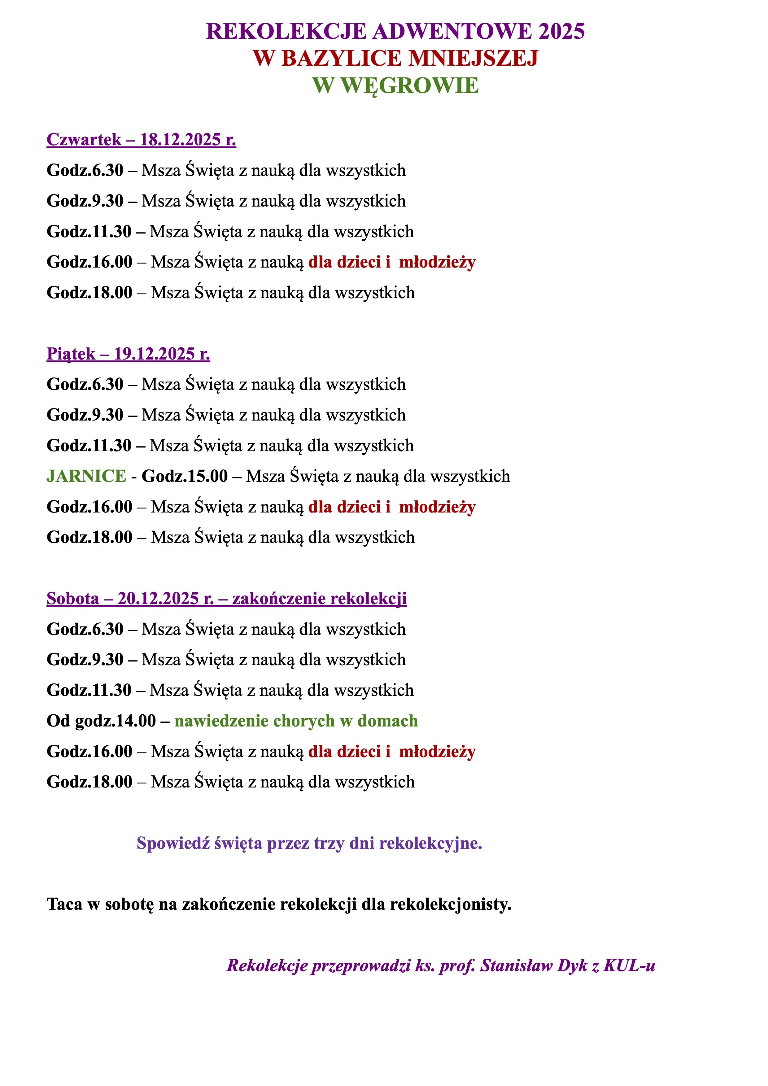 PORZĄDEK REKOLEKCJI ADWENTOWYCH 2025 W BAZYLICE MNIEJSZEJ W WĘGROWIE przez Ks. Proboszcz / 4 dni temu
