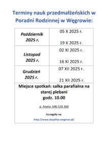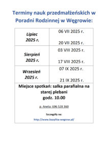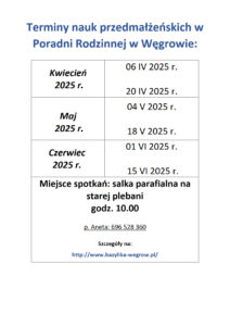 Aktualności Terminy nauk przedmałżeńskich w poradni Rodzinnej w Węgrowie przez Jakub Plas / 2 miesiące temu