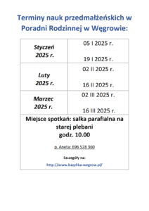 Aktualności Katolicka Poradnia Rodzin w Węgrowie – terminy spotkań przez Jakub Plas / 10 miesięcy temu